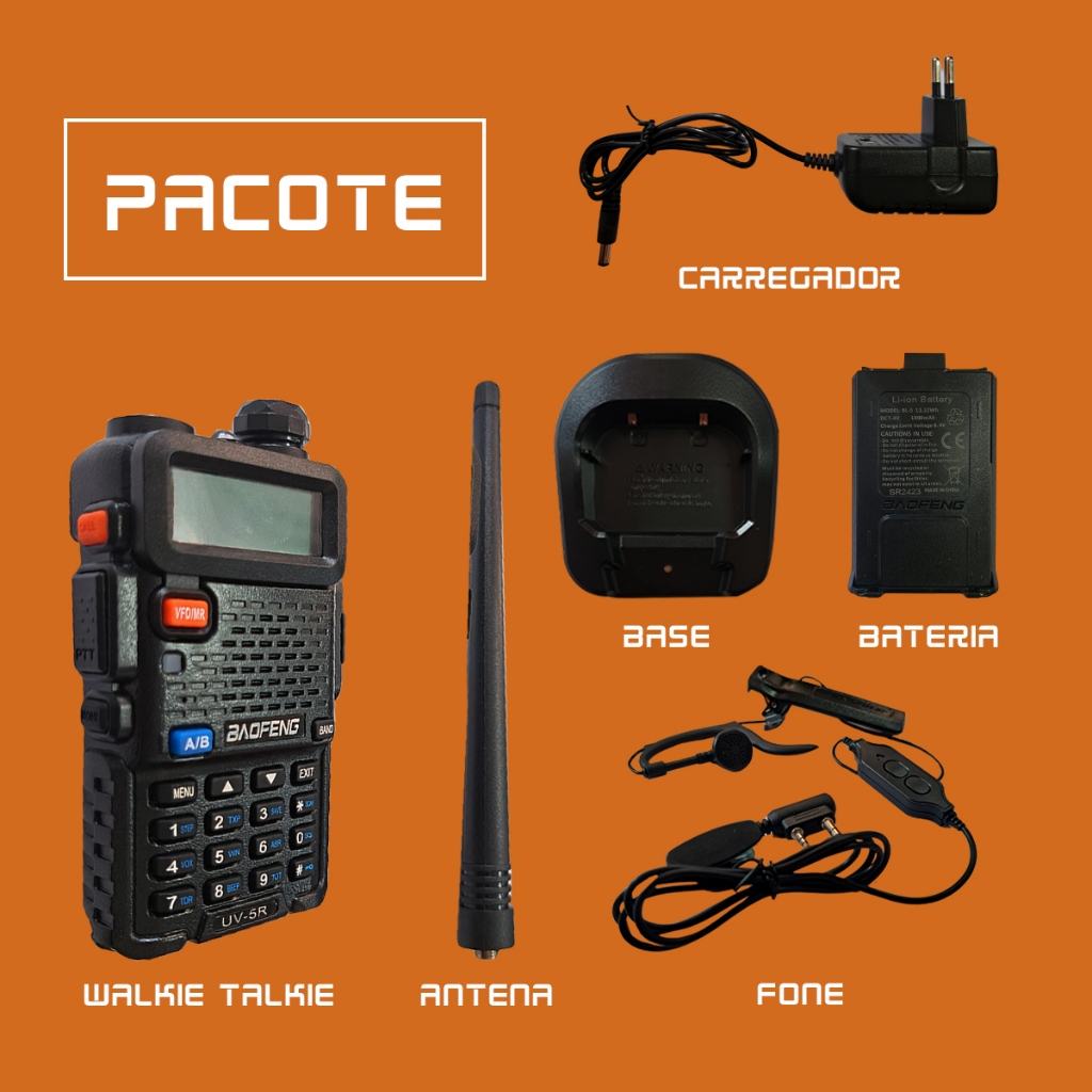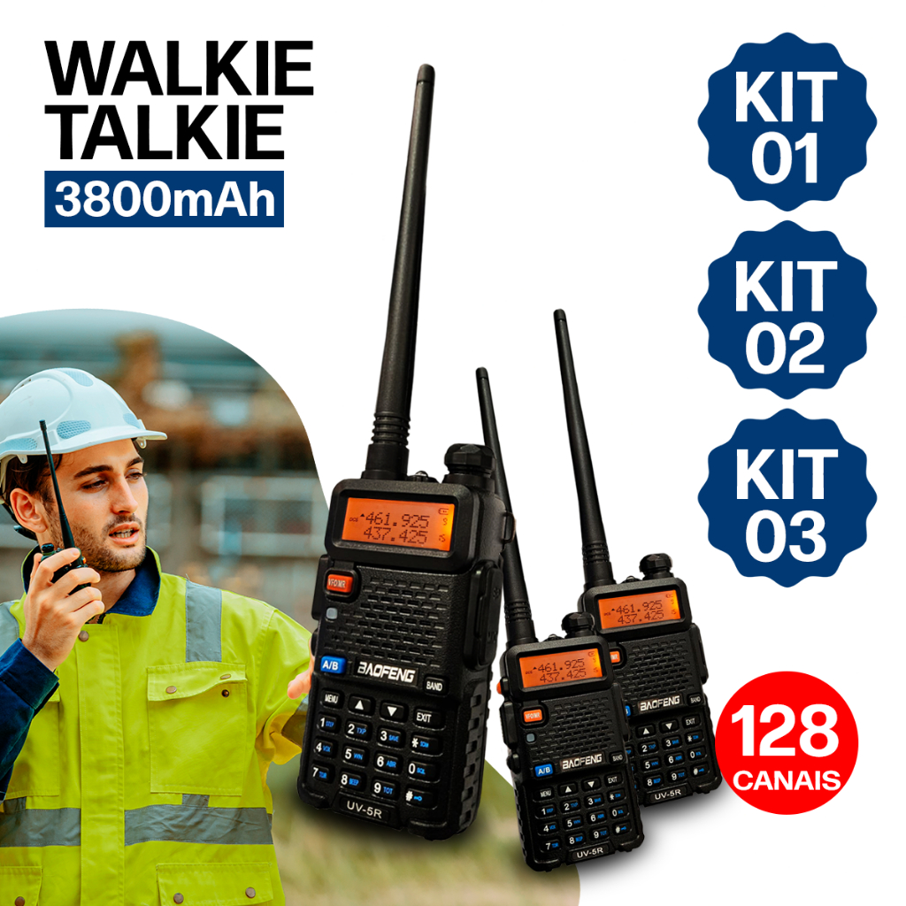 Kit 3/2/1 Rádio Comunicador Ht Dual Band Uhf Vhf Fm Baofeng Uv-5r Freqüência Walkie Talkie Walk Talk