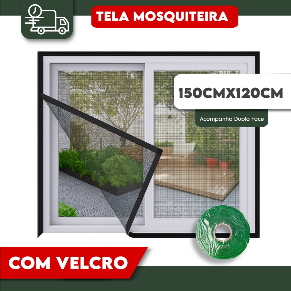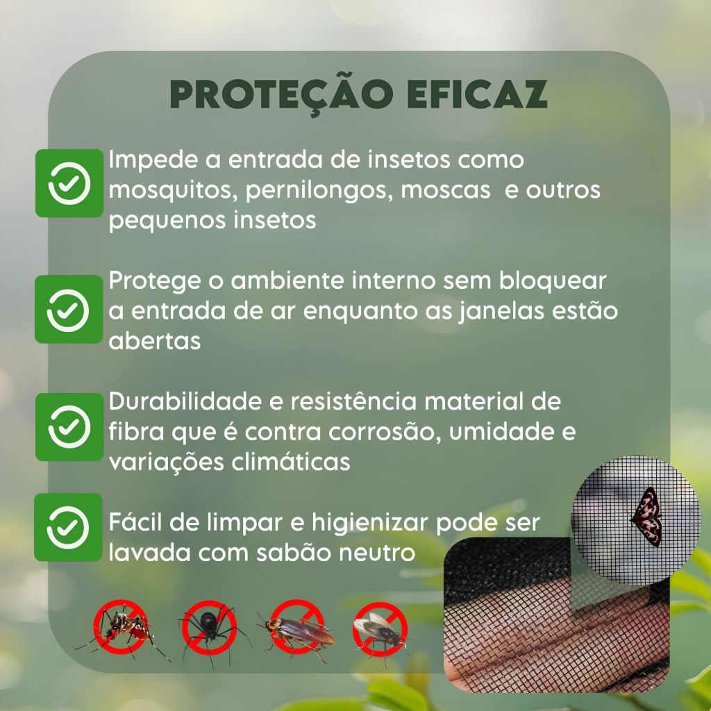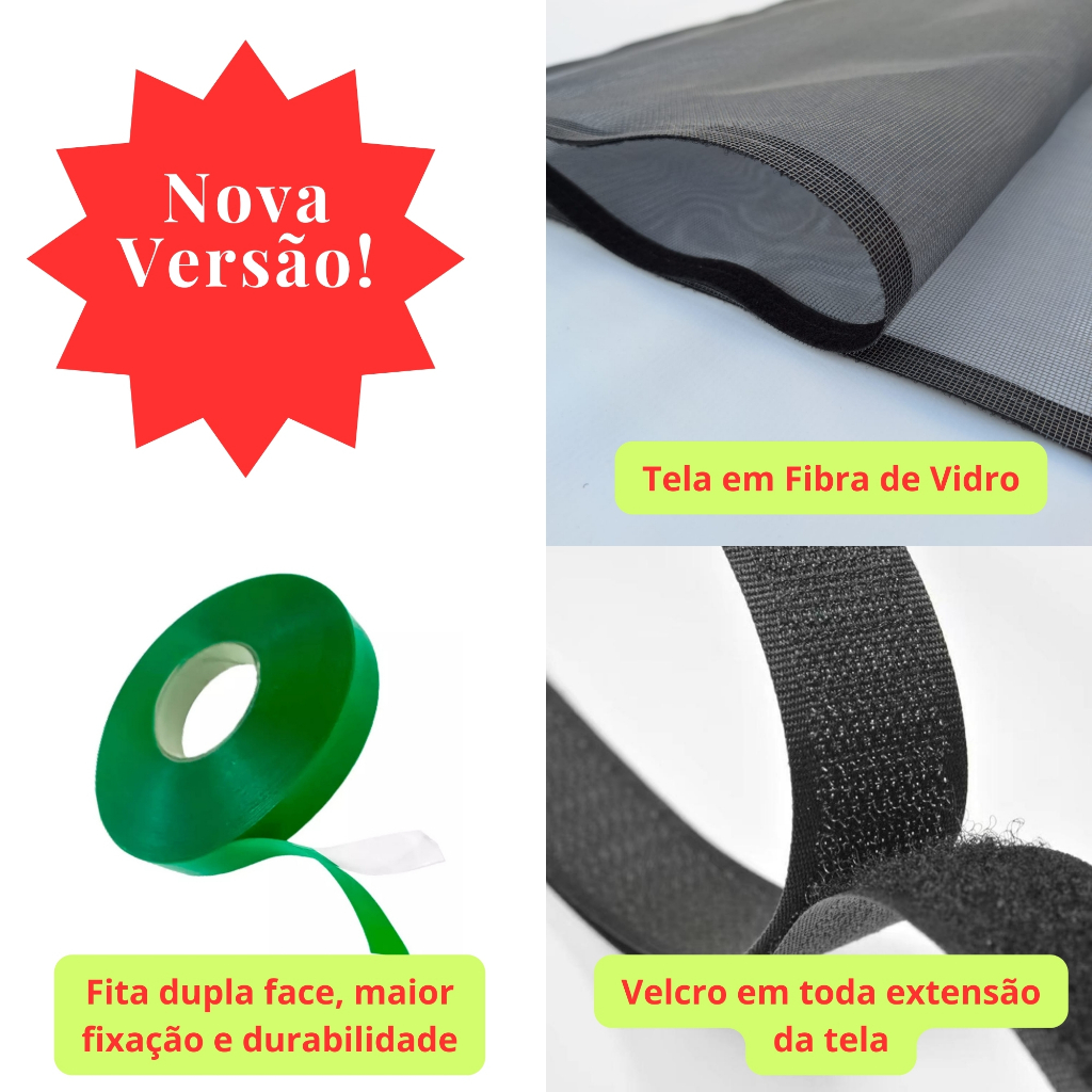 Tela Mosquiteira Com Velcro em Fibra de Vidro Para Janelas Contra Insetos Mosquitos e Pernilongos