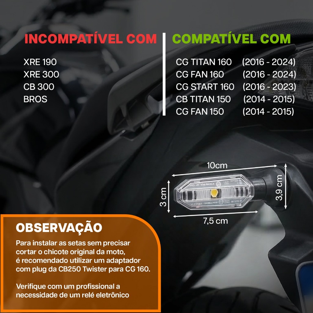 Kit 4 Pisca Seta De Led Cb250 Twister Cg Titan Fan Start 160