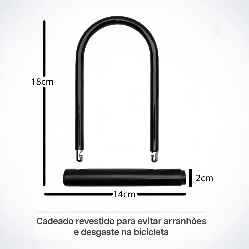 Cadeado U Lock Aço Reforçado para Bike Bicicleta com Chave Antifurto 18x14cm JustGoFit
