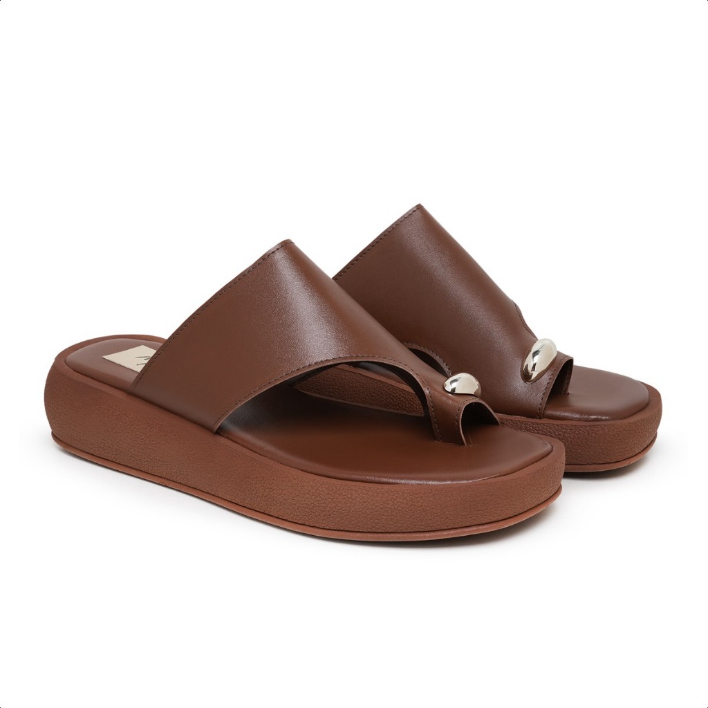 Sandália Feminina Flatform Detalhe Amendoa Calce Fácil Conforto