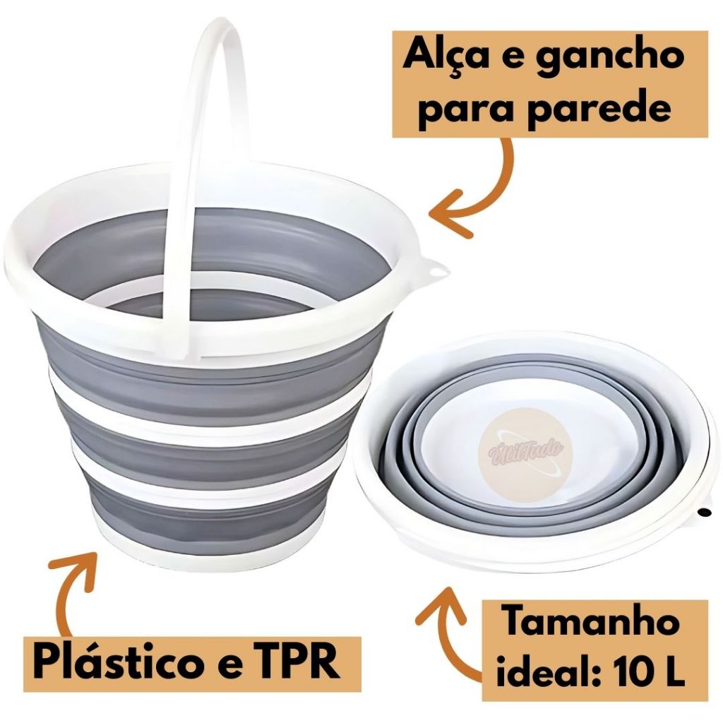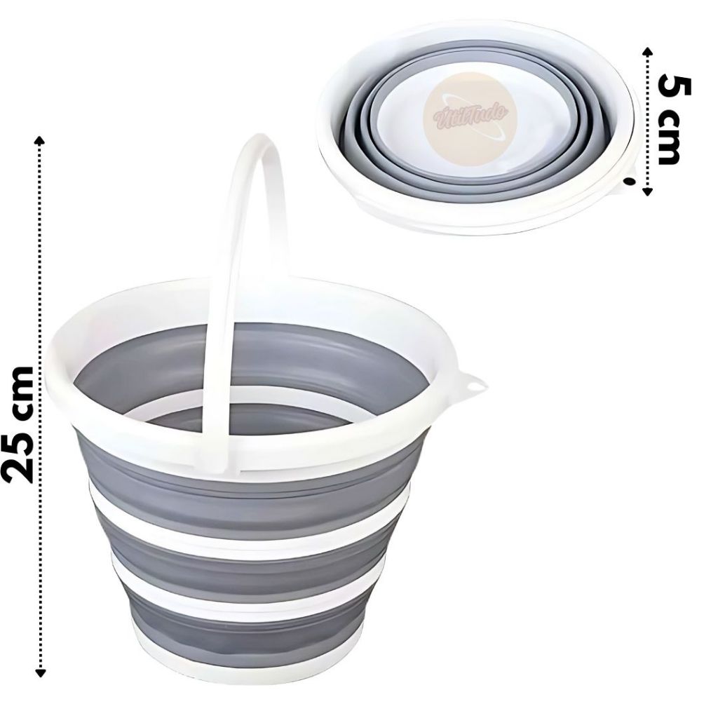 Kit 2 Balde Retrátil Dobrável de Silicone – 10L | Compacto, Portátil, Cor Cinza, Ideal para Viagem e Camping Limpeza