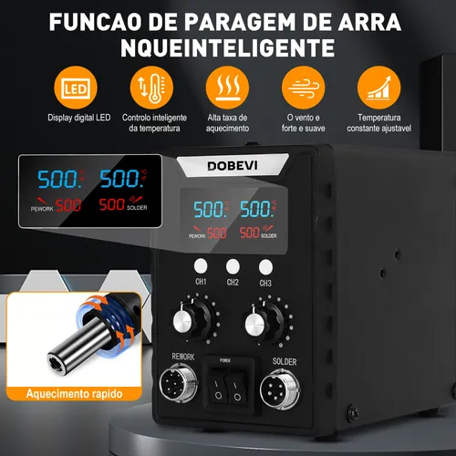 Estação De Solda Retrabalho 2 Em 1 Soprador Ferro Dobevi