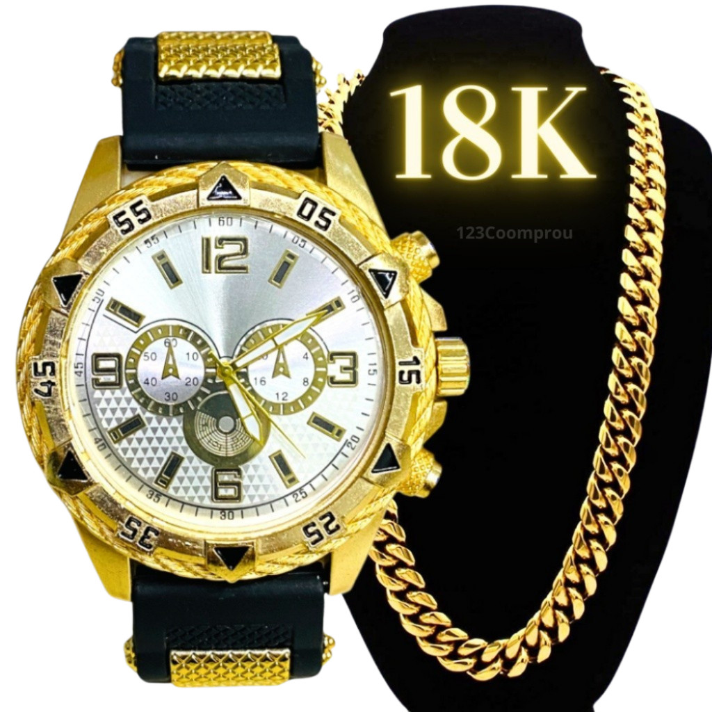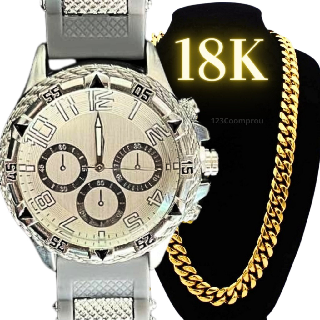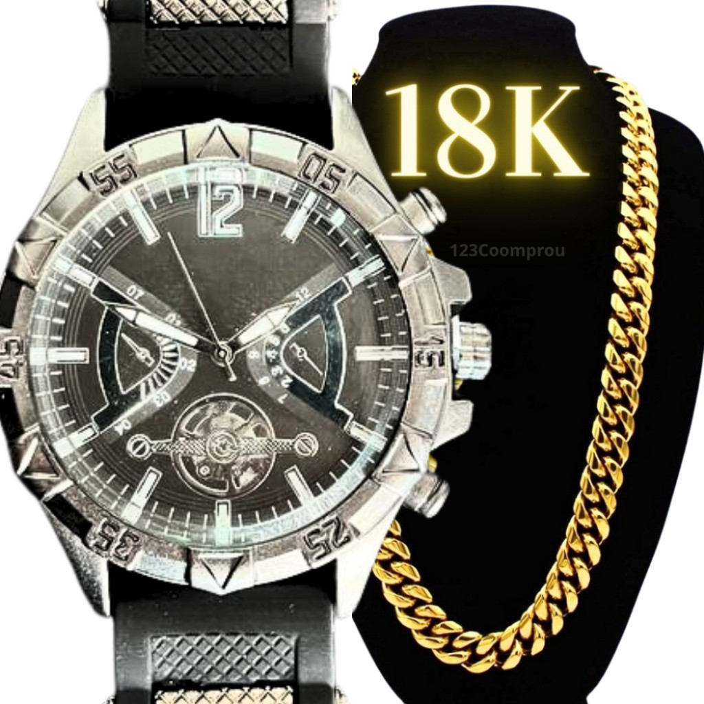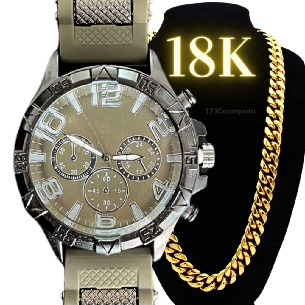 Kit Relógio Masculino Pulseira De Silicone + Corrente Minimalista