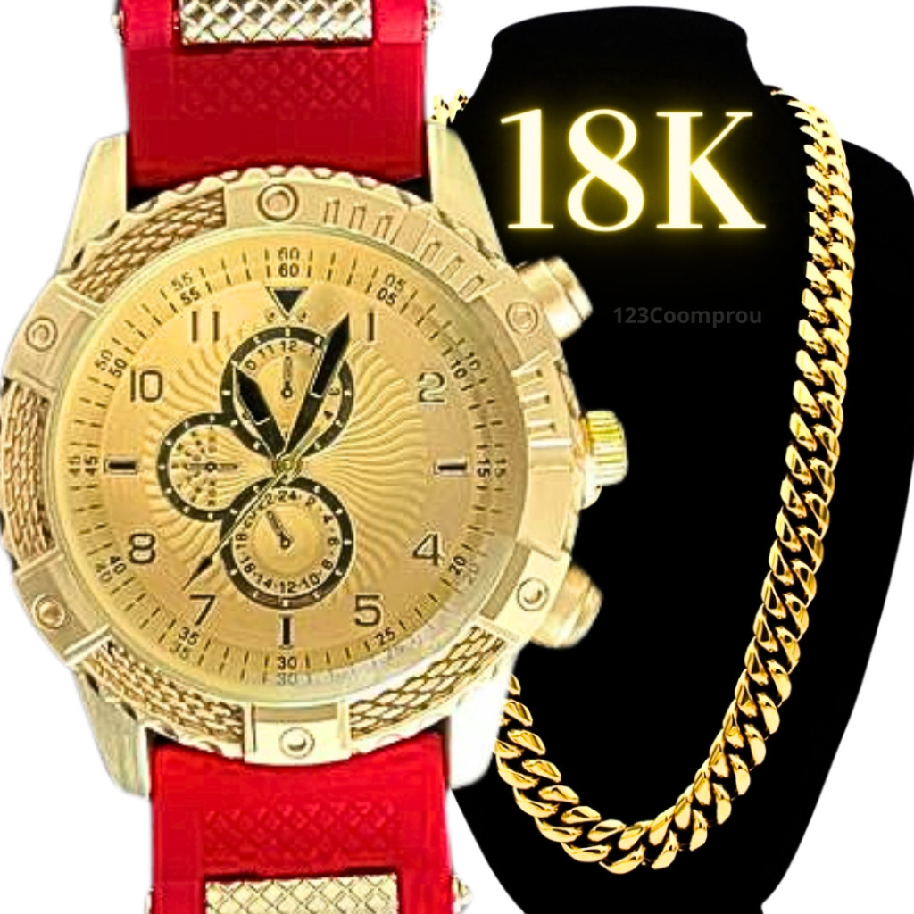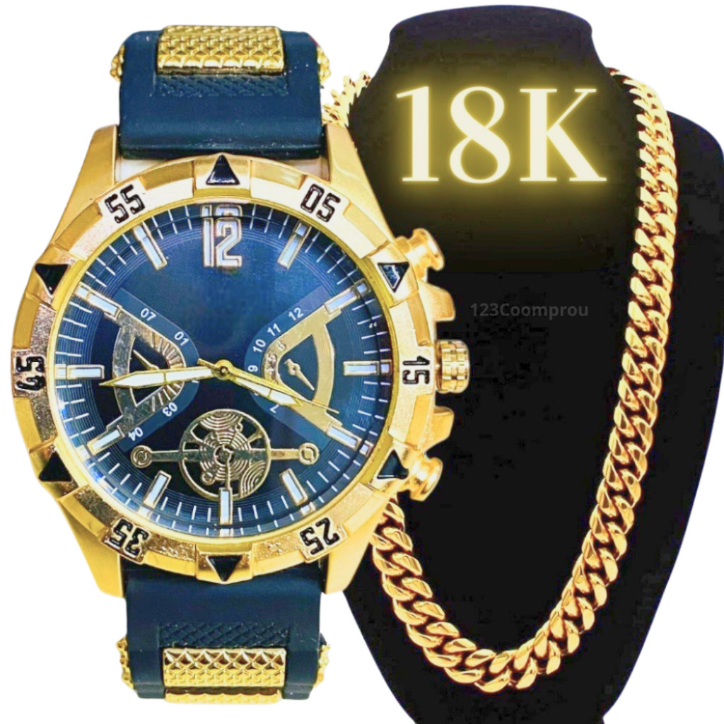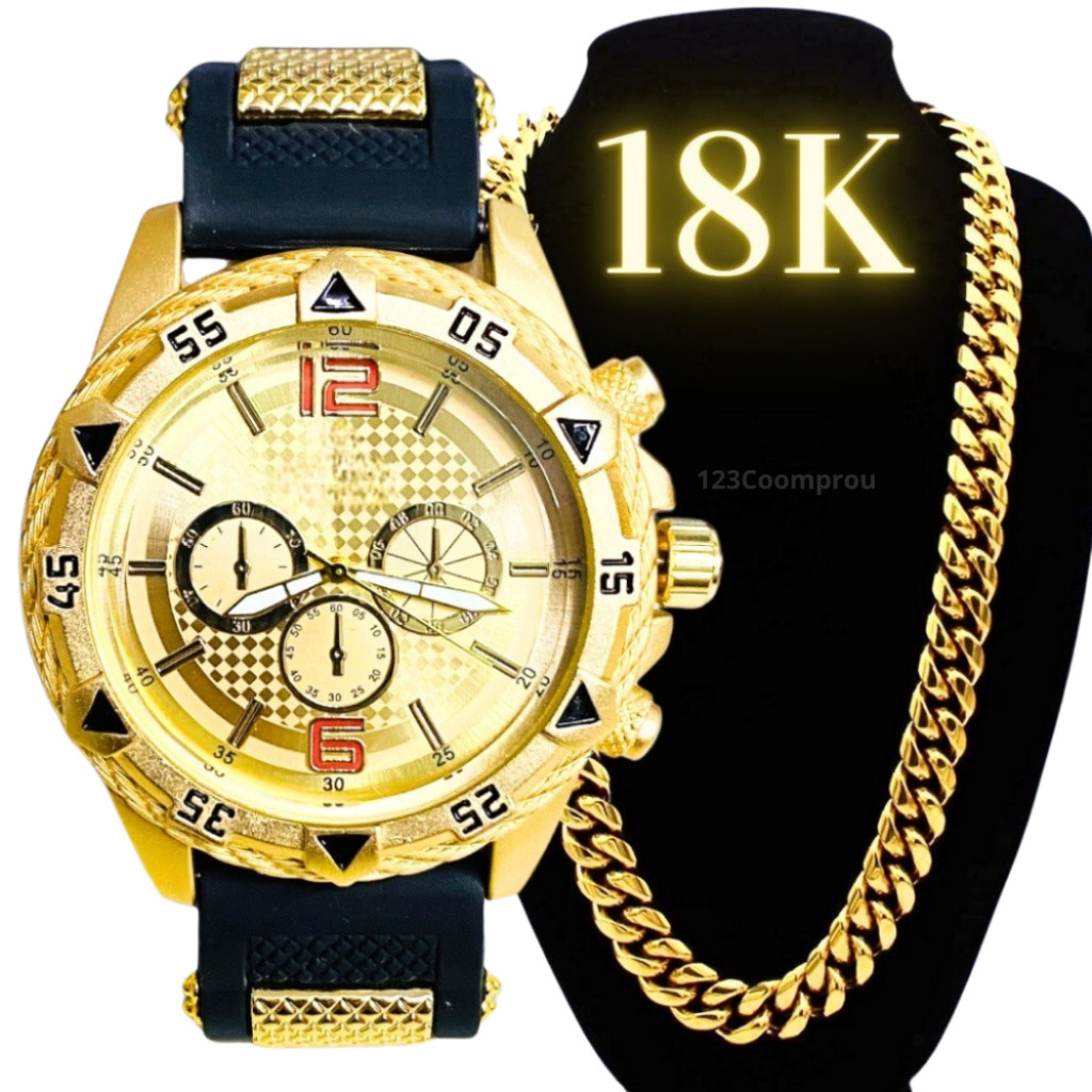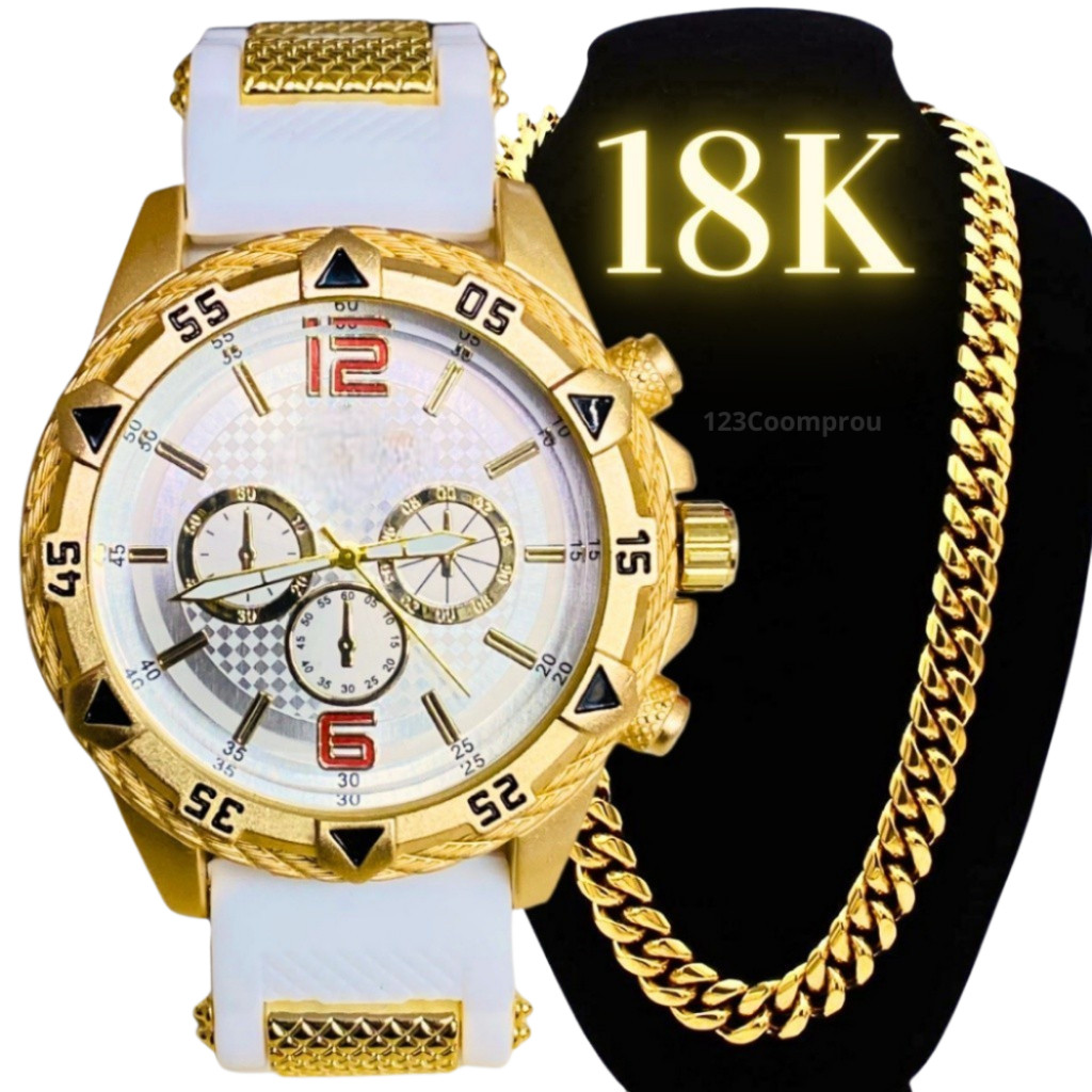 Kit Relógio Masculino Pulseira De Silicone + Corrente Minimalista