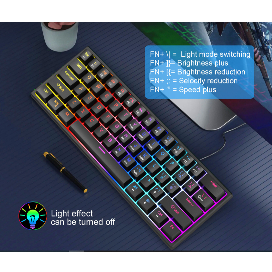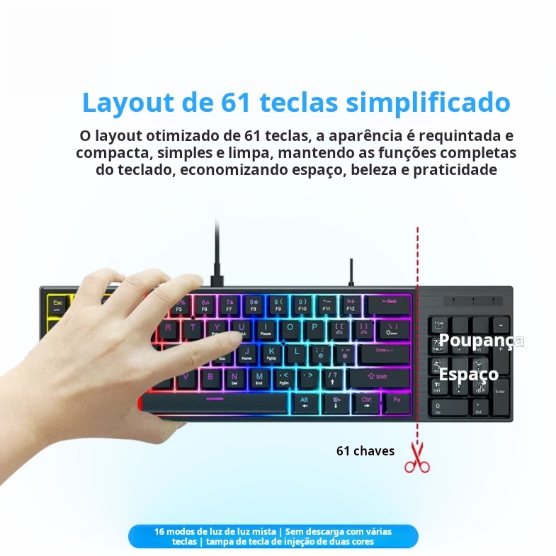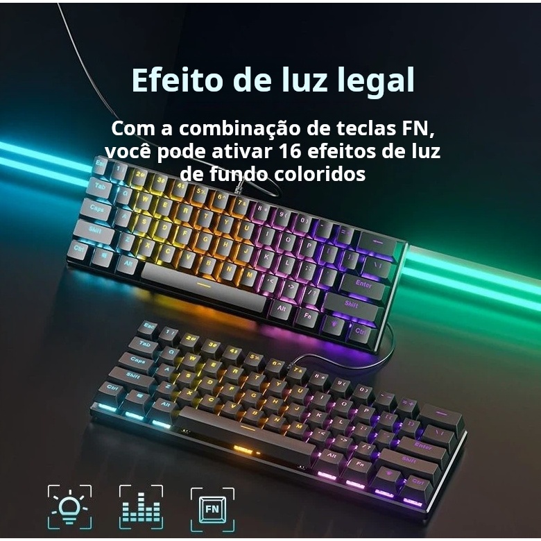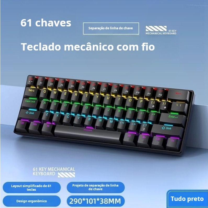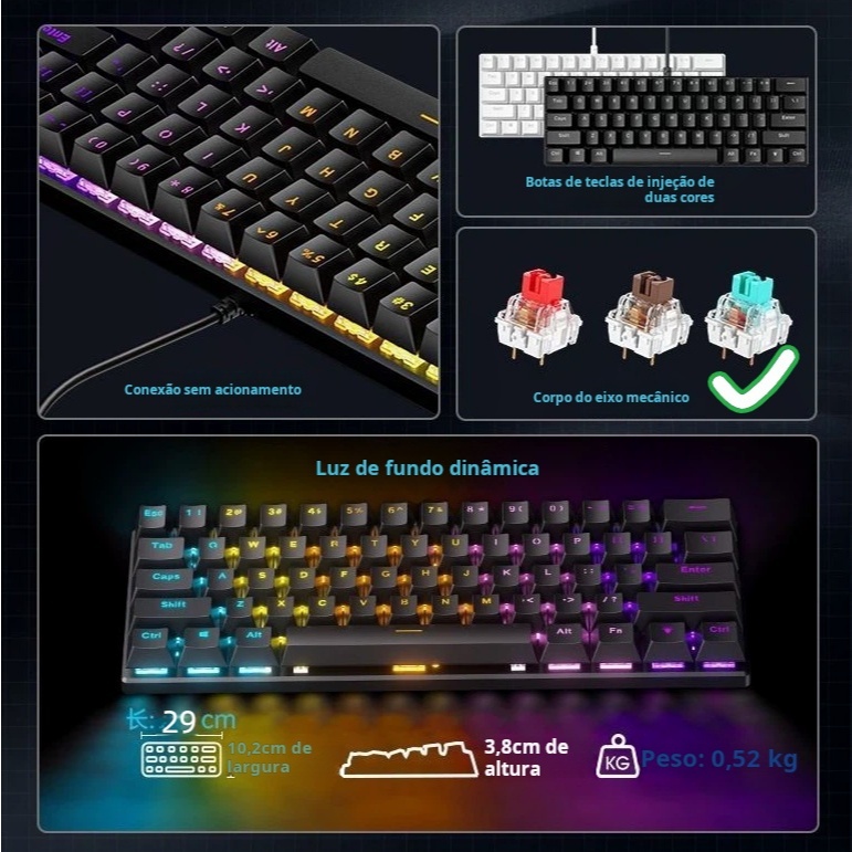 Teclado Gamer Mecânico Kunp Switch Azul 60% com Fio Usb-c Preto Rgb Para Pc Computador Video game
