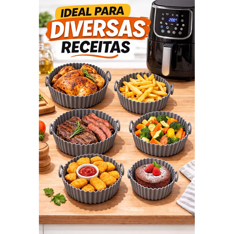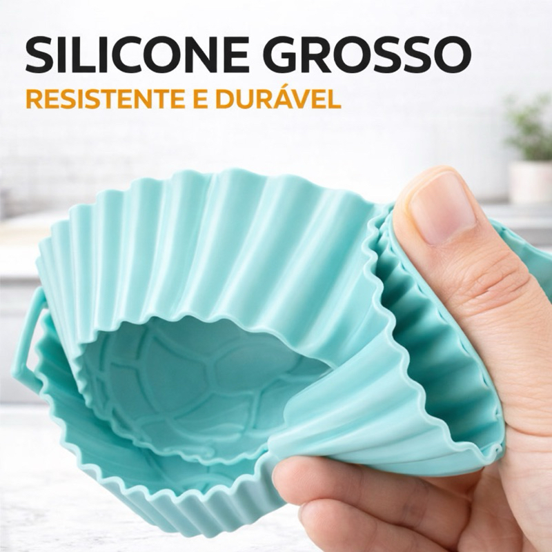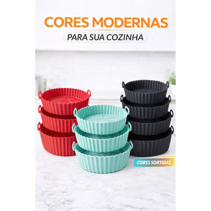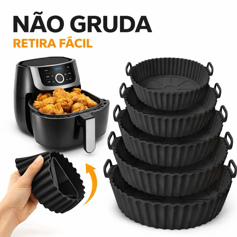 Kit 6 Forma de Silicone para Fritadeira Air Fryer com Alça Antiaderente Resistente 220°C Flexível Fácil Limpeza Cozinha