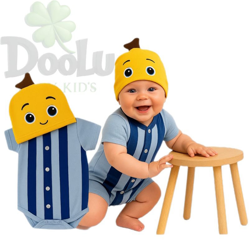 Body de Bebê Banana de Pijama + Touca Kit body Mesversario Tematico