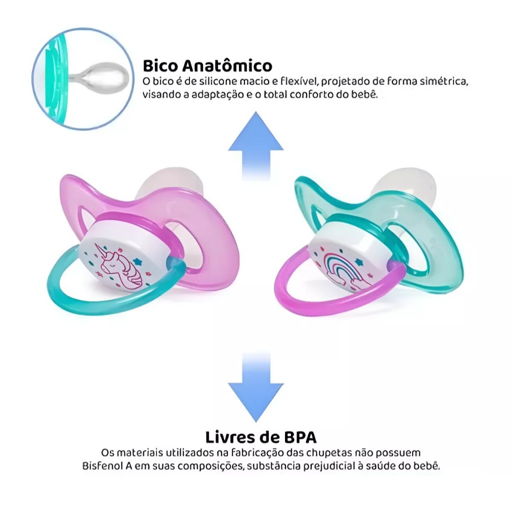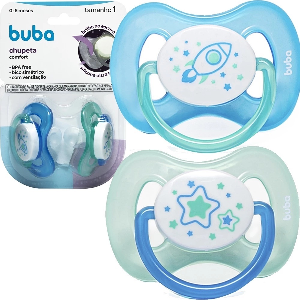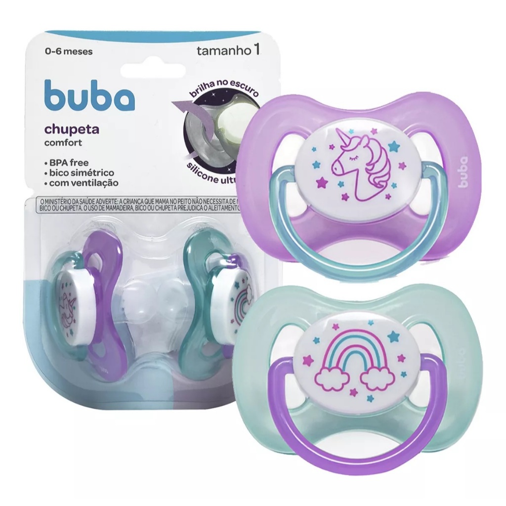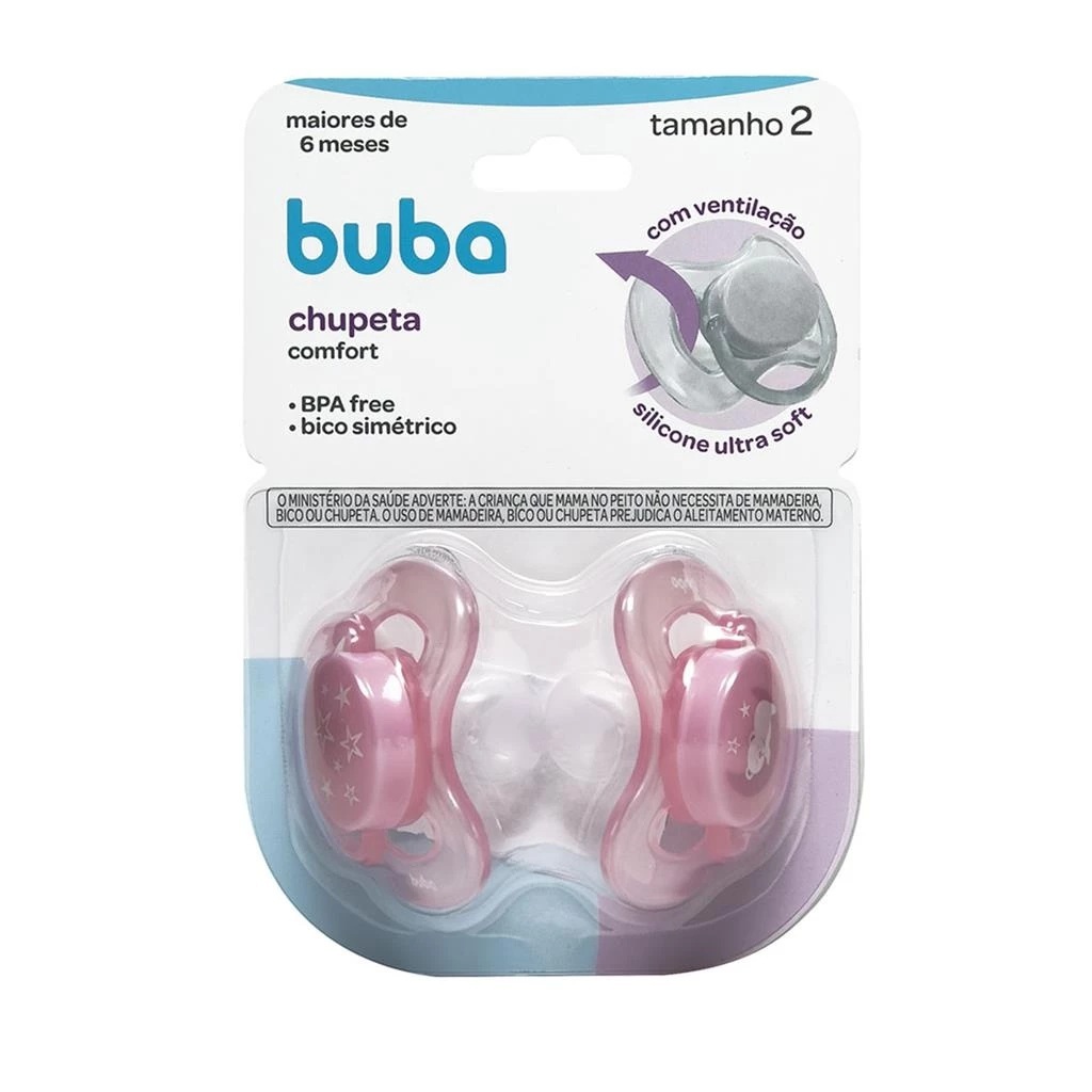 Kit 2 Chupetas Buba Comfort Ventilação Bico Silicone Tam 1 0-6M