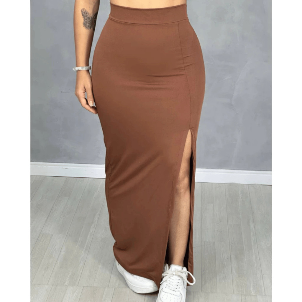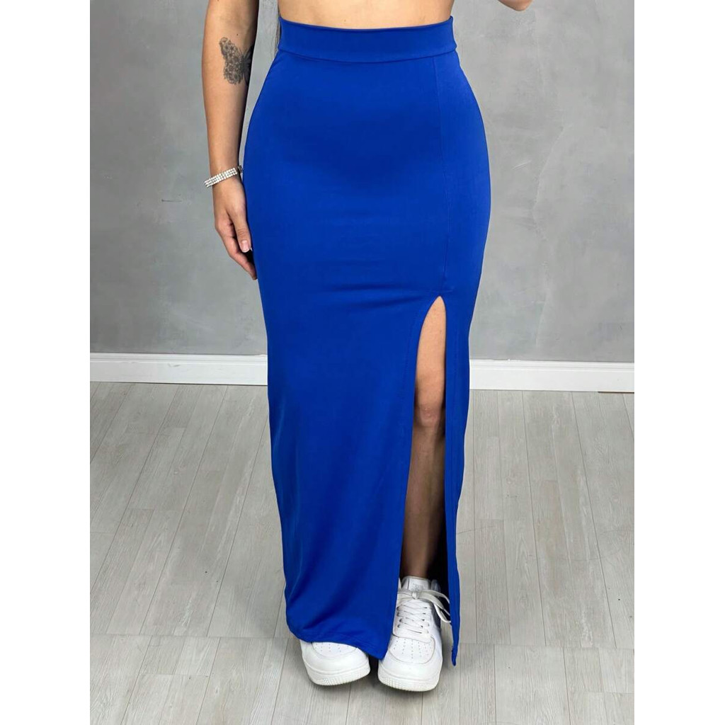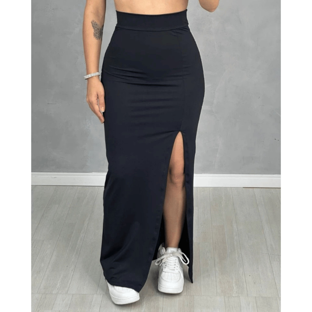 Saia Feminina Longa com Fenda Lateral Suplex Tubinho