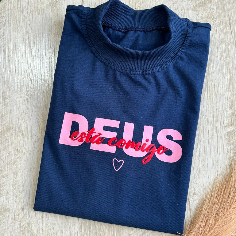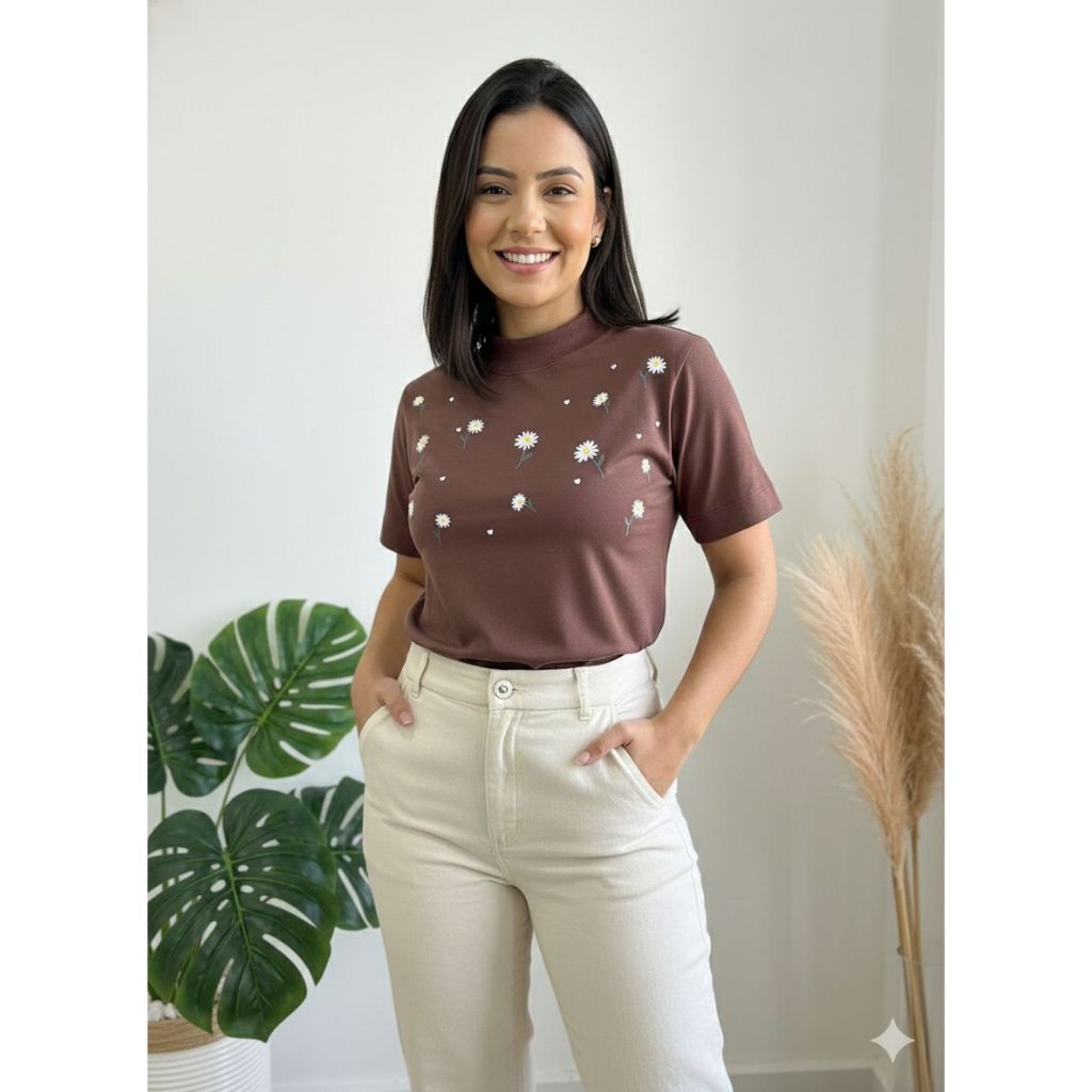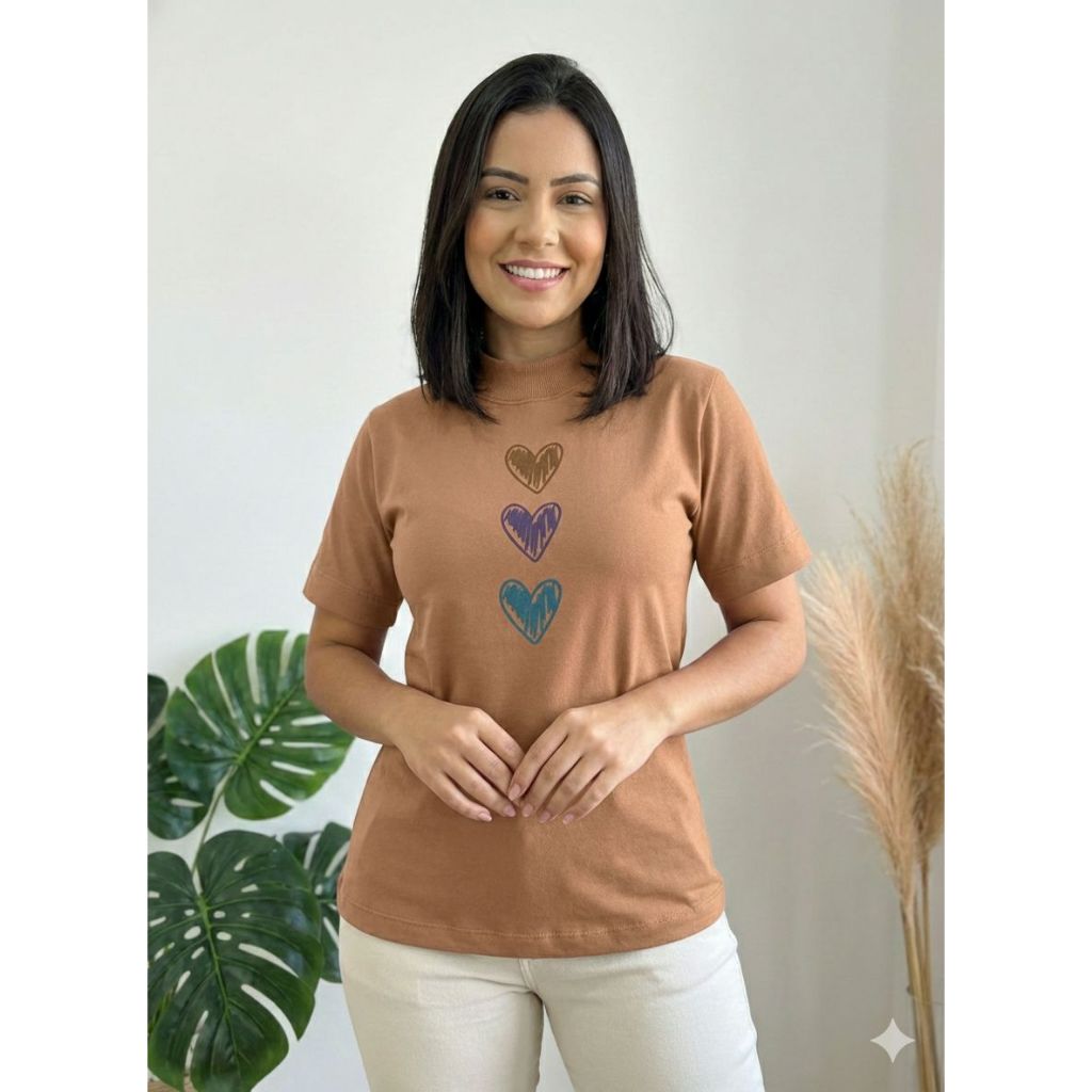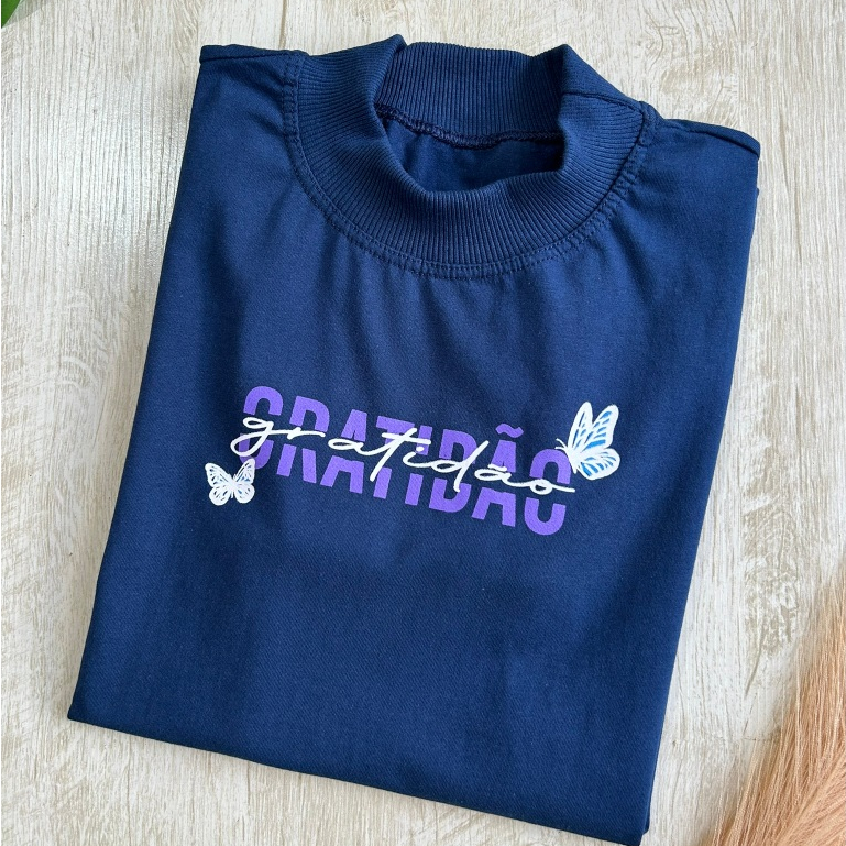 Blusa Feminina Gola Alta Elegante Algodão Premium Macia Estampada Tshirt Camiseta Básica Casual Moda Evangélica