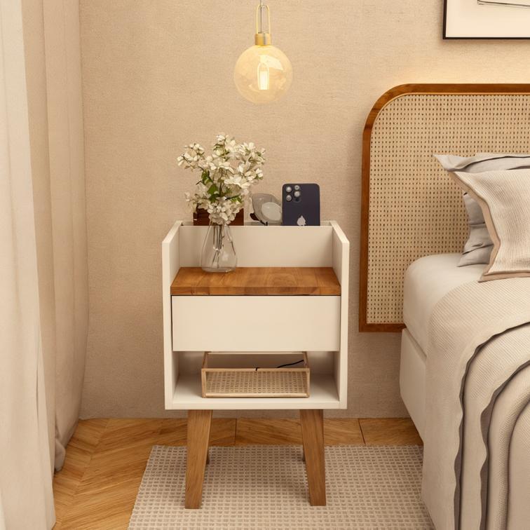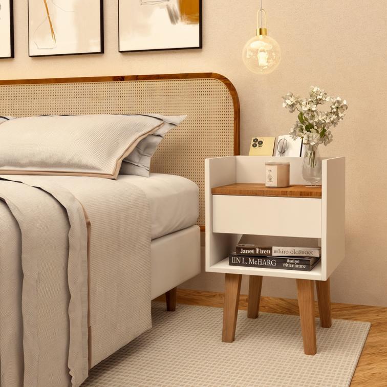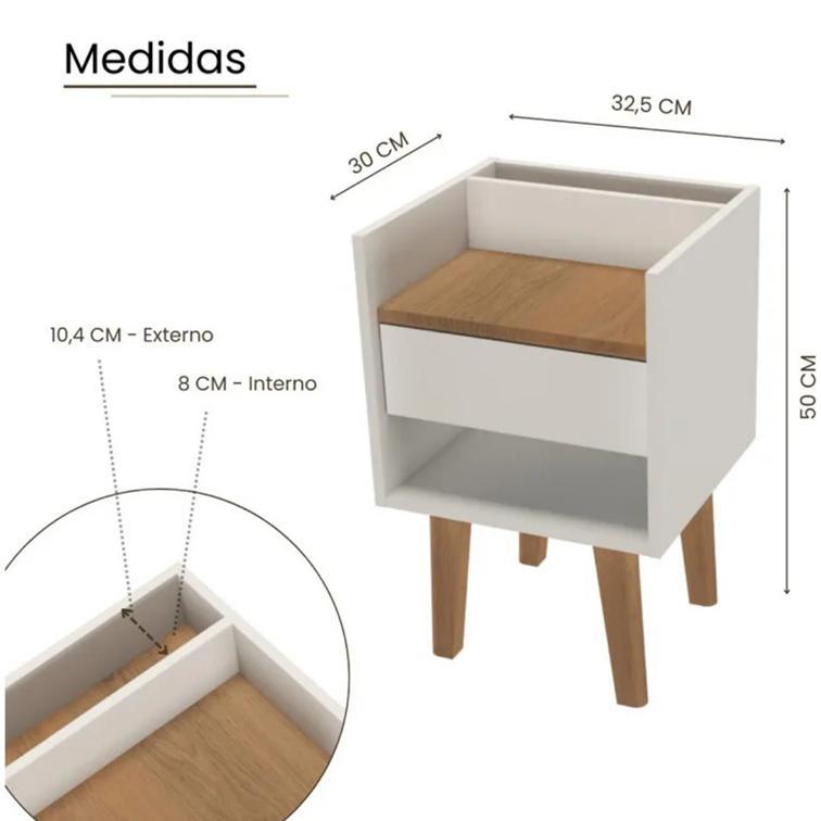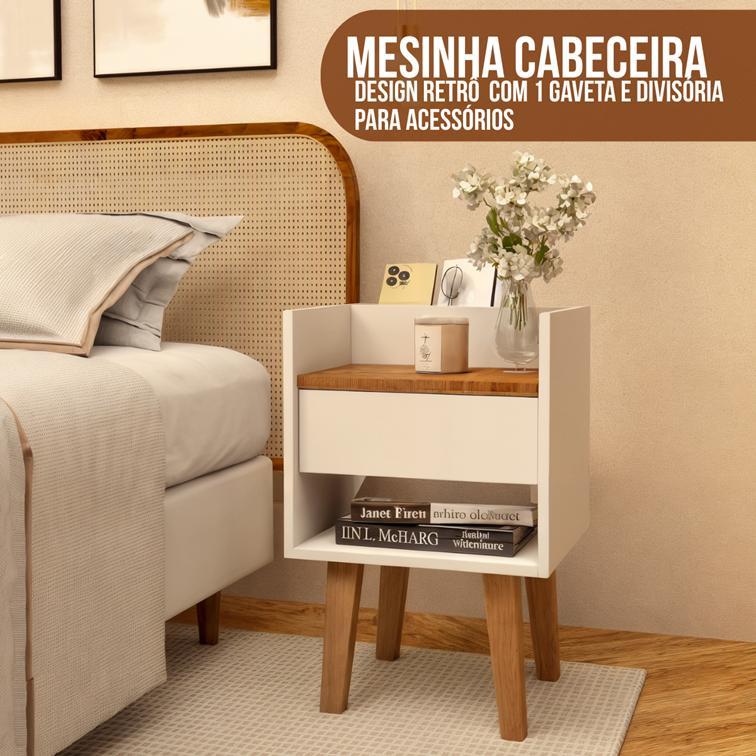 Mesinha Cabeceira Branca Criado Retrô Pés Madeira Mdf Quarto