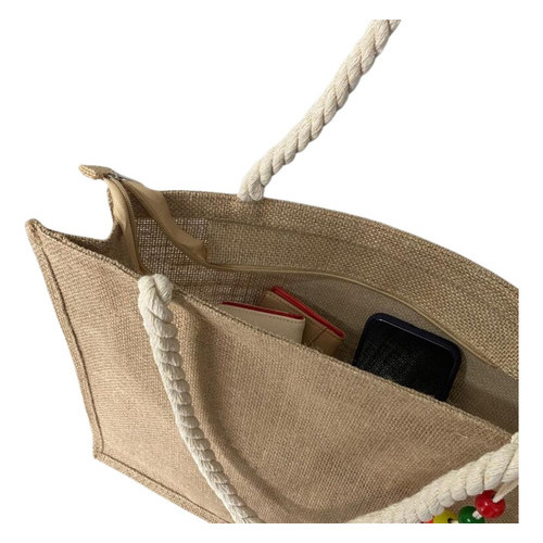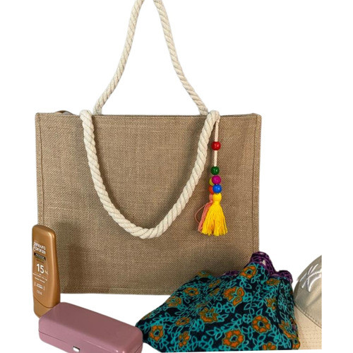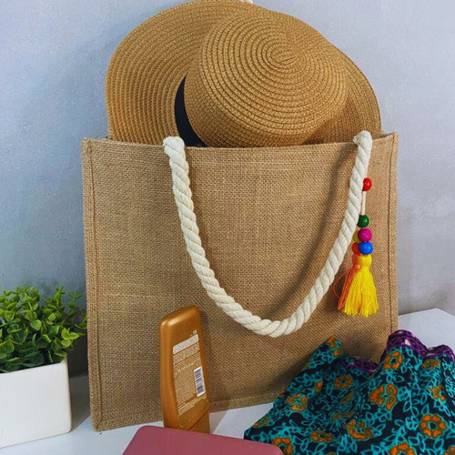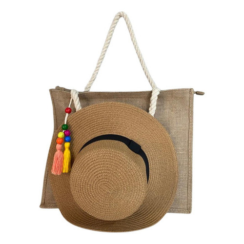 Bolsa Sacola Praia Grande Feminina Ombro + Chaveiro E Chapéu Cor Marrom
