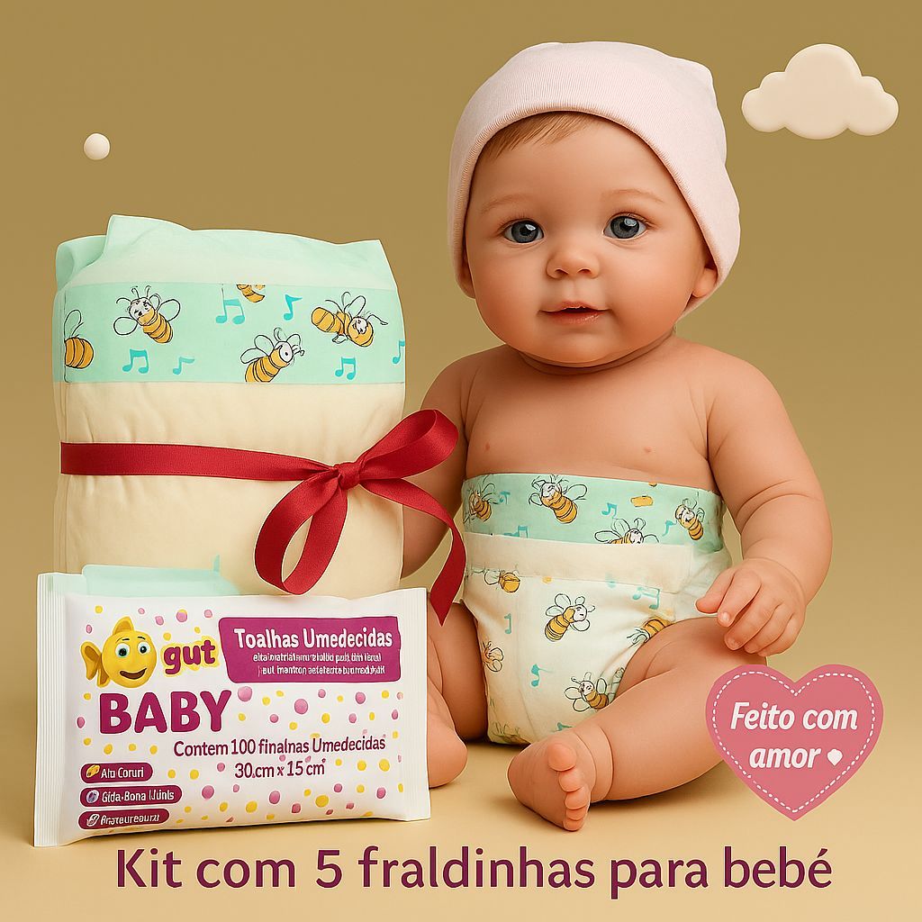 Kit Fralda Lenço e Chupeta para bebê reborn -Bonecas - Kit Promocional