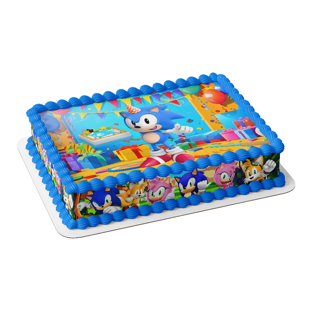 Papel Arroz e 4 Faixas Comestíveis Para Bolo Tema Sonic
