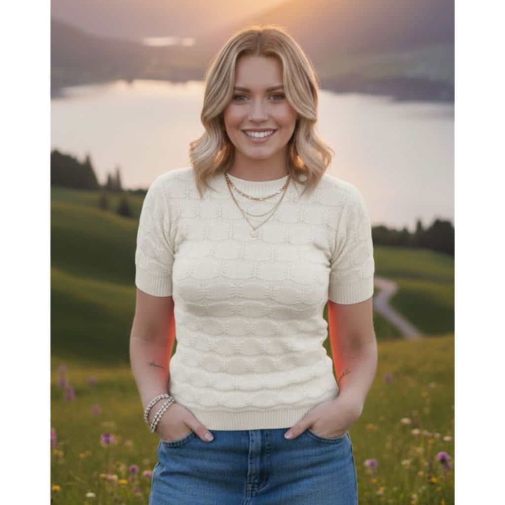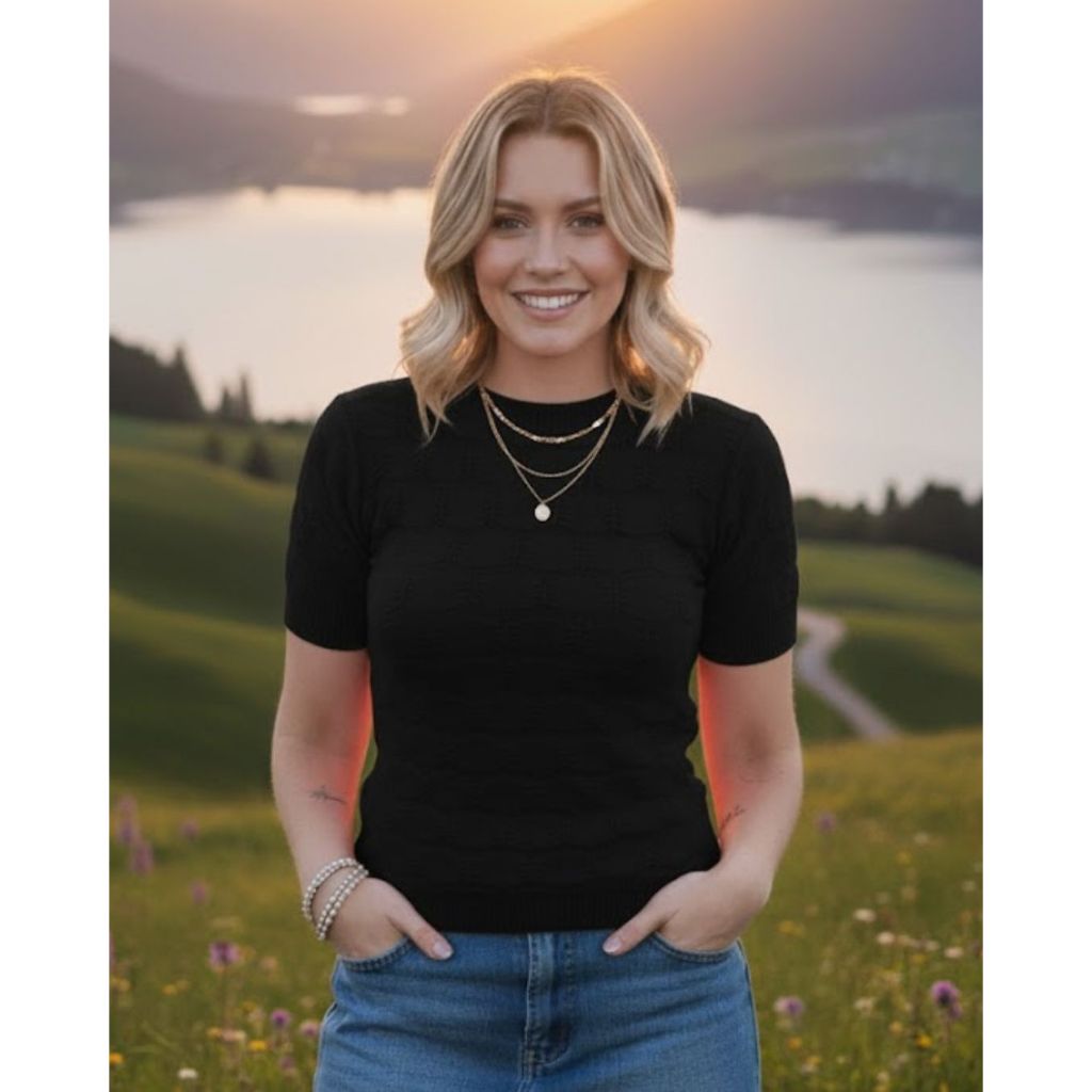 Blusa Feminina Tricot Modal Texturizada Manga Curta Roupa Feminina Estilo Premium Conforto e Charme