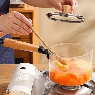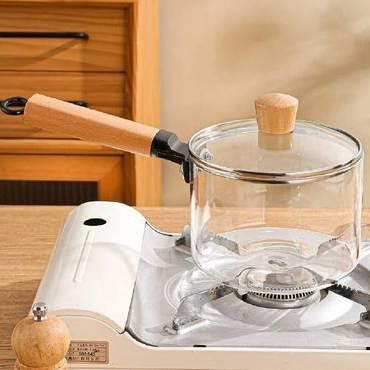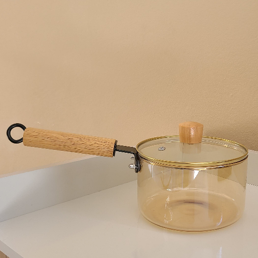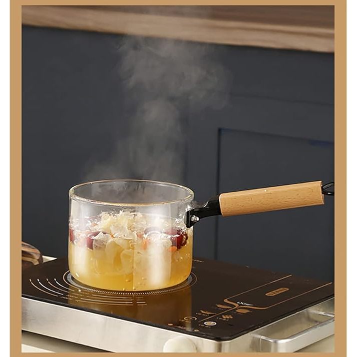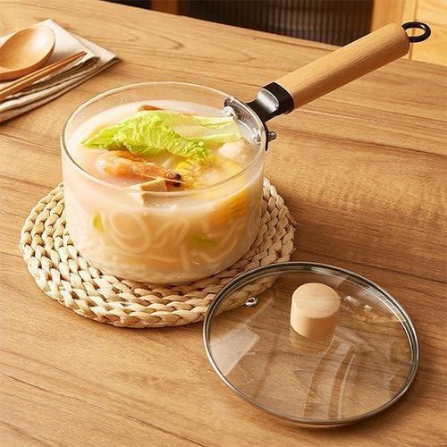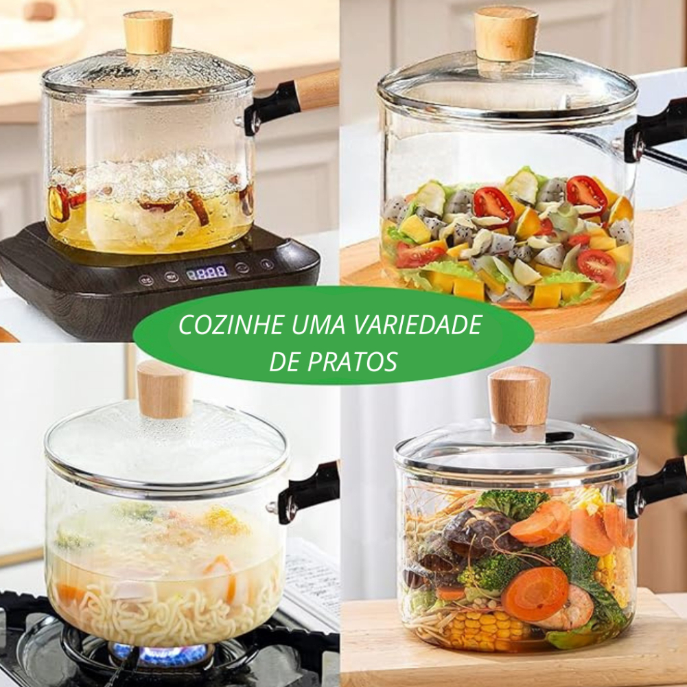 Panela de Vidro Transparente Cozinha Com Tampa Cabo de Madeira 1,8L