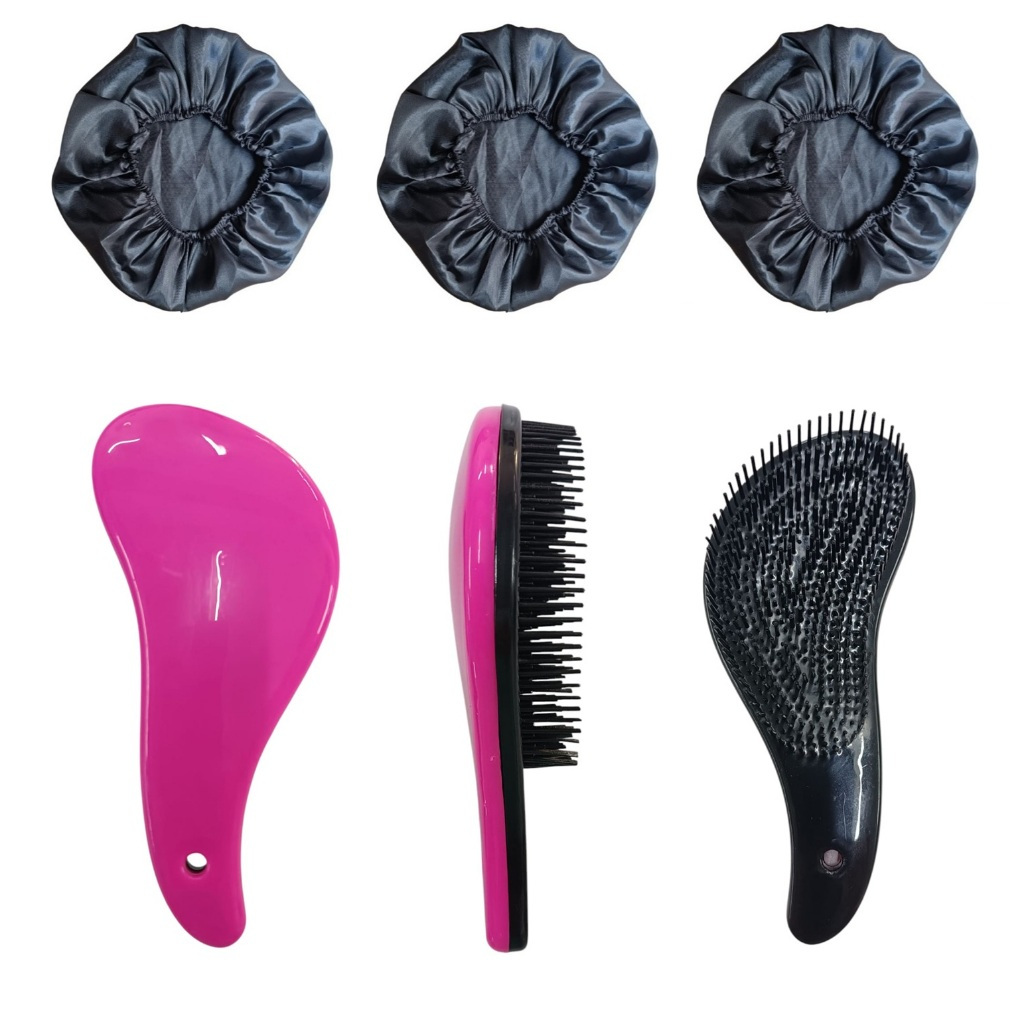 Kit 24 peças, 12 Touca de Cetim e 12 Escovas MÁGICA Sem Quebrar Os Fios salão beleza CABELO