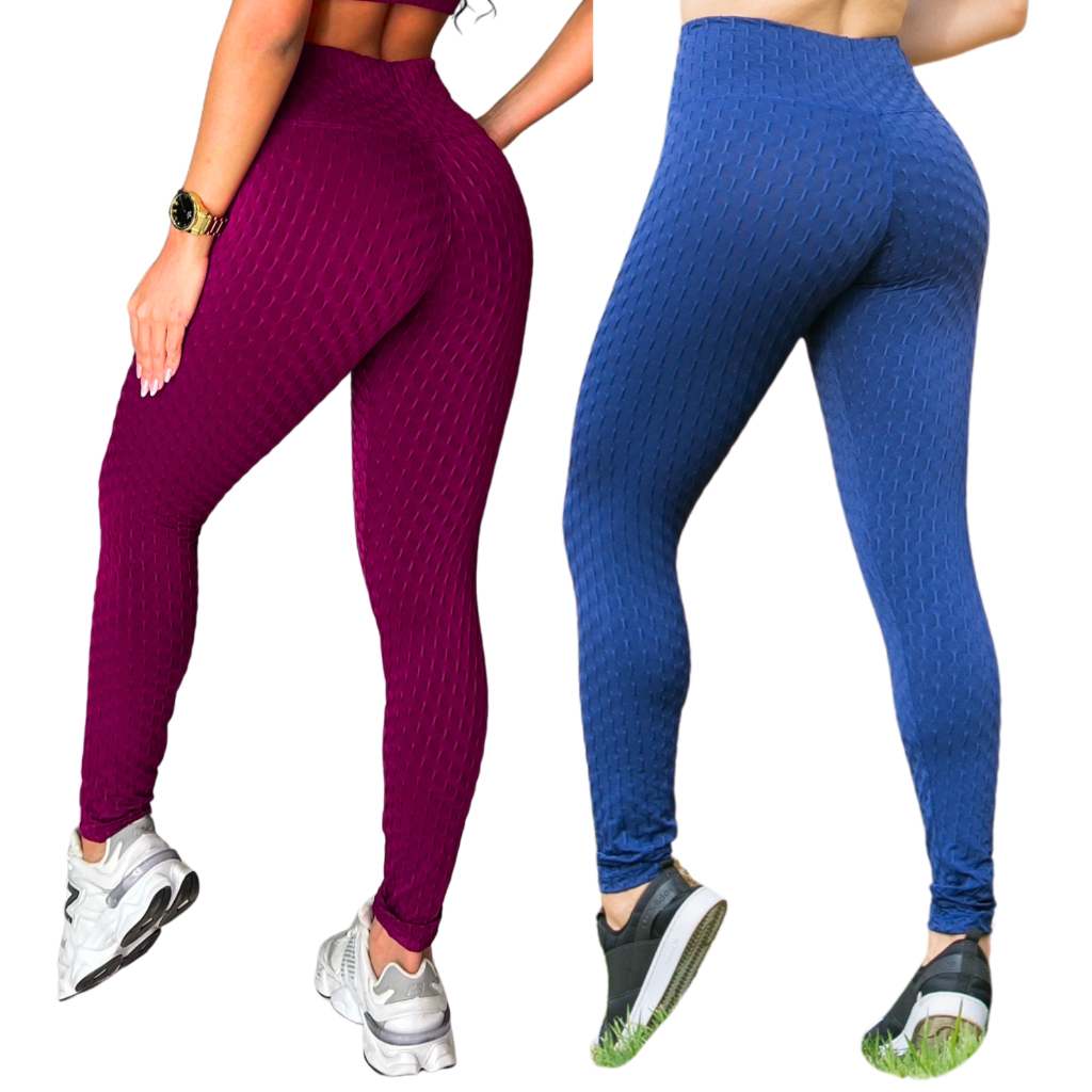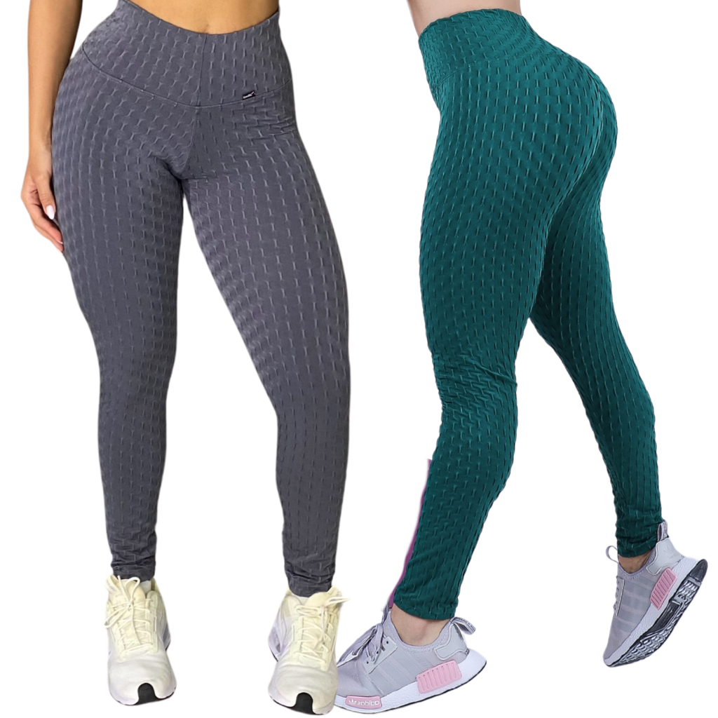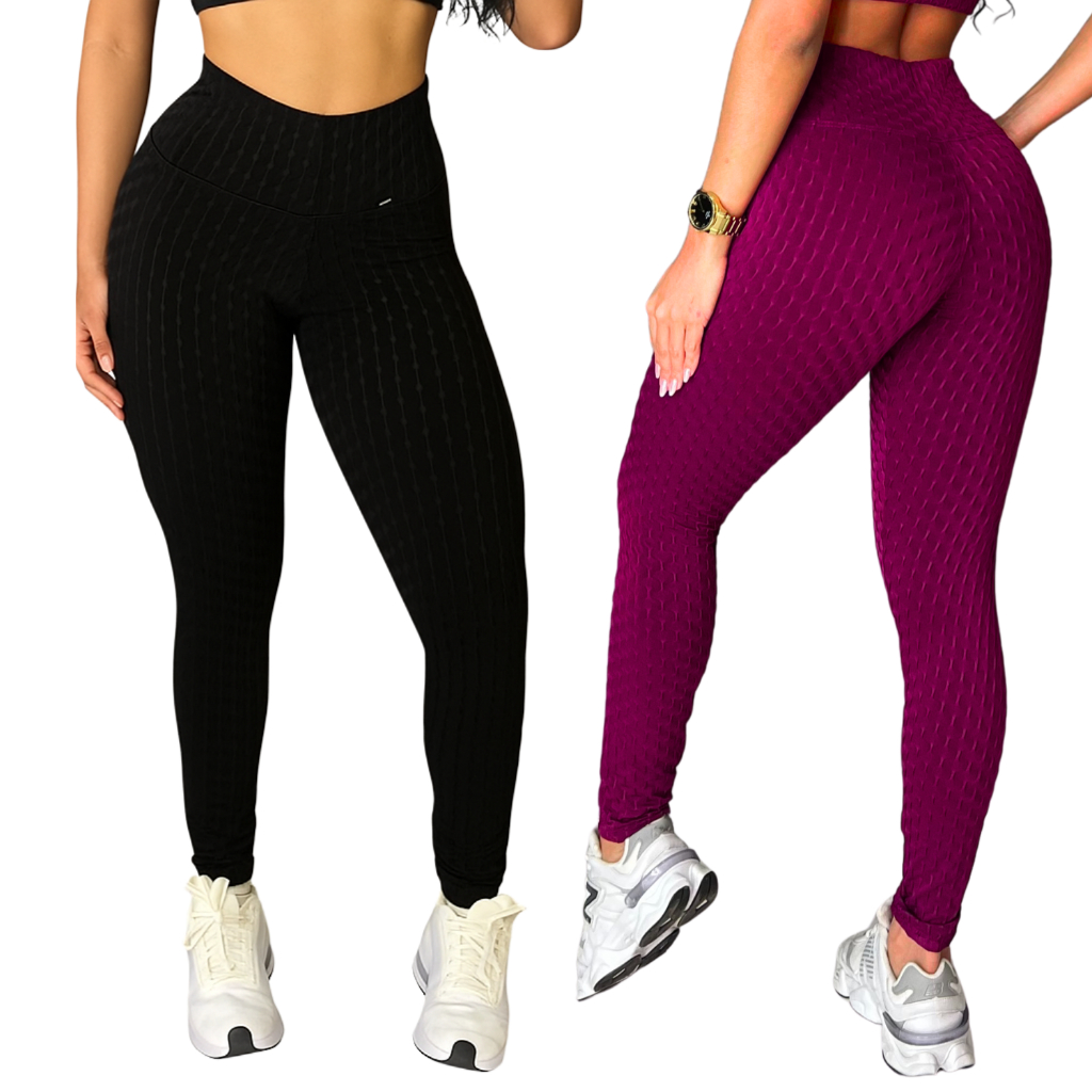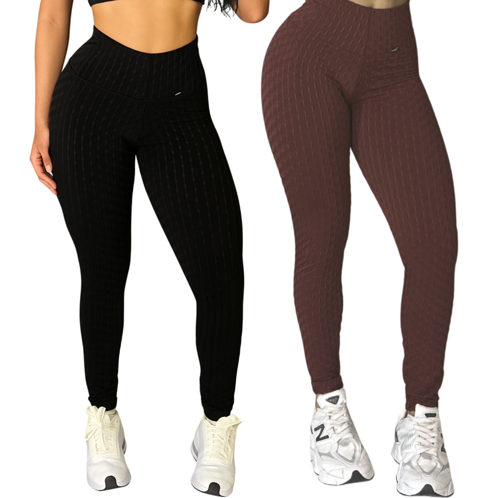 Kit 2 Calças Legging Jaquard Bolha de Academia Feminina Zero Transparência Fitness