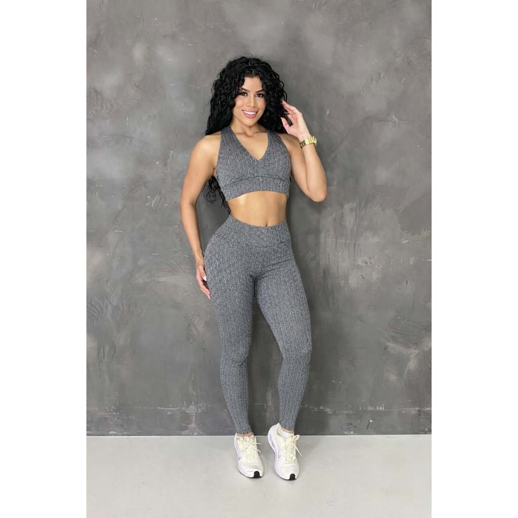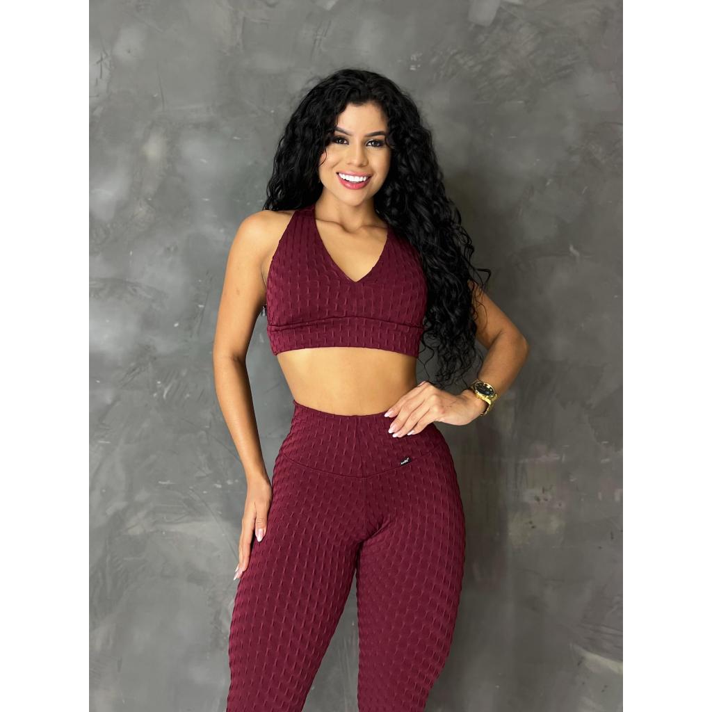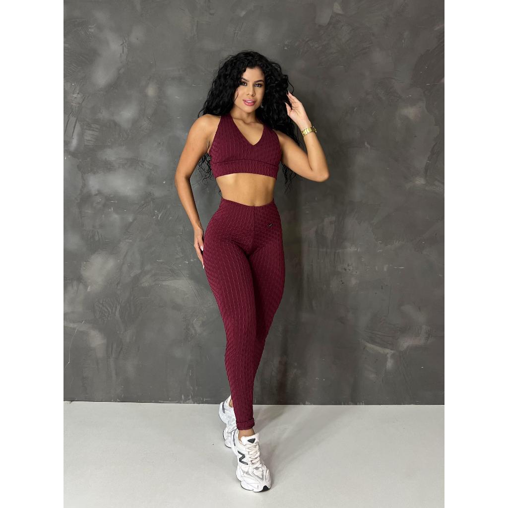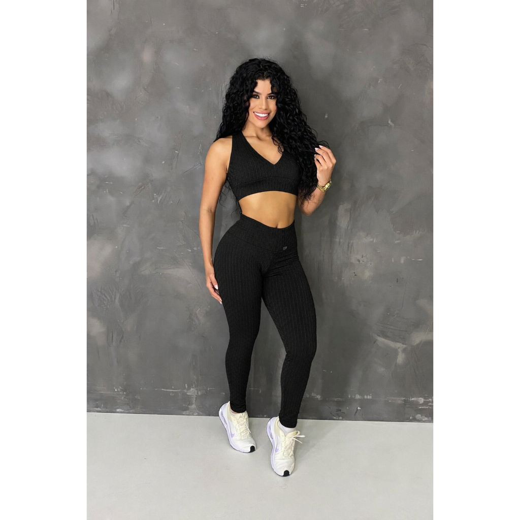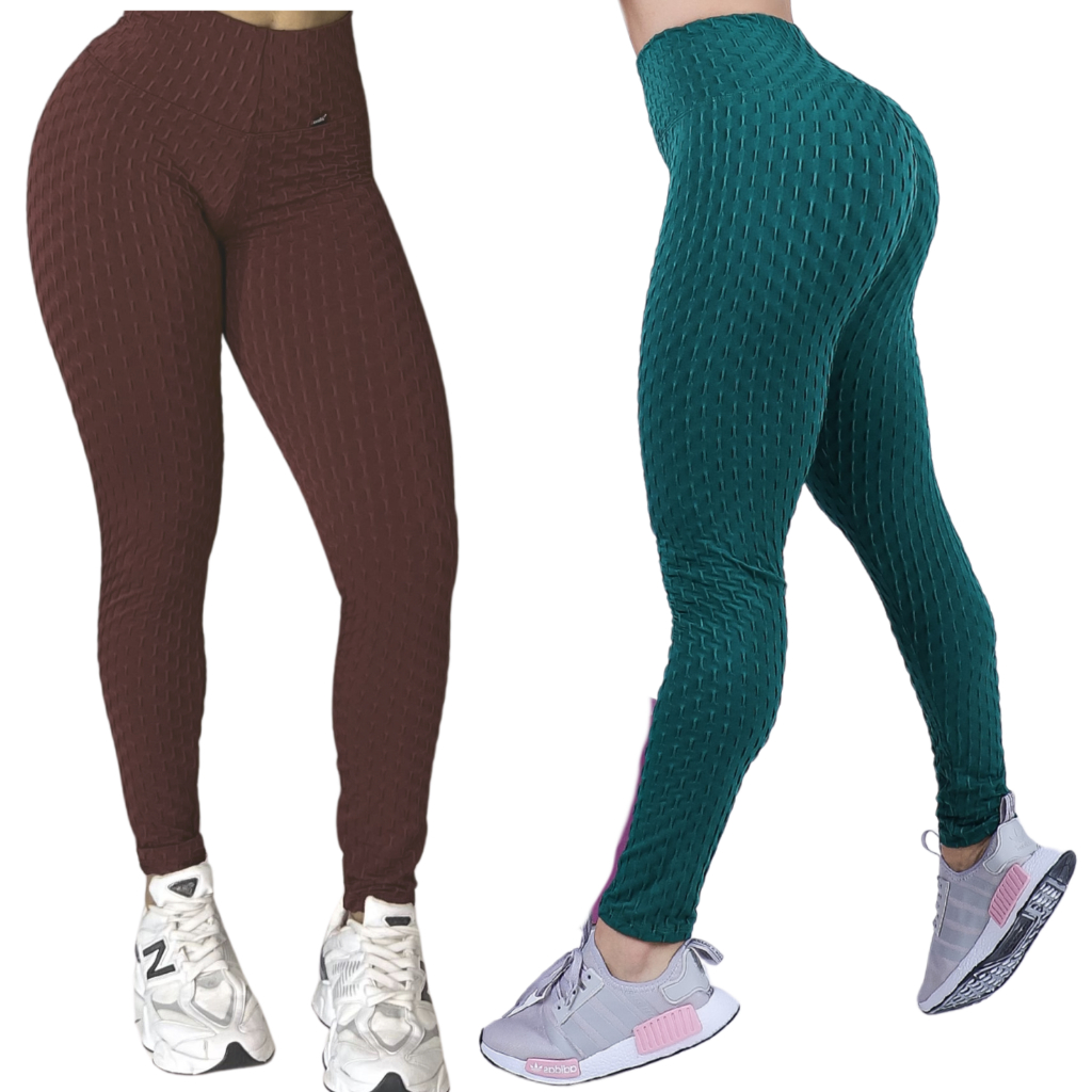 Kit 2 Calças Legging Jaquard Bolha de Academia Feminina Zero Transparência Fitness