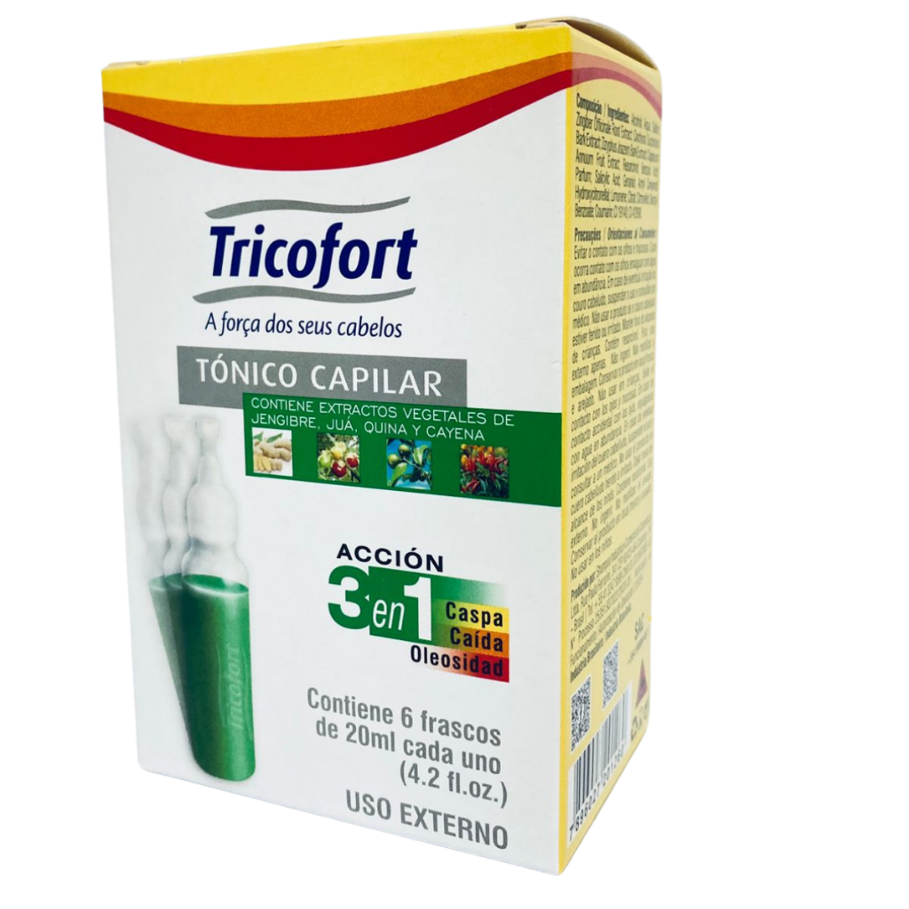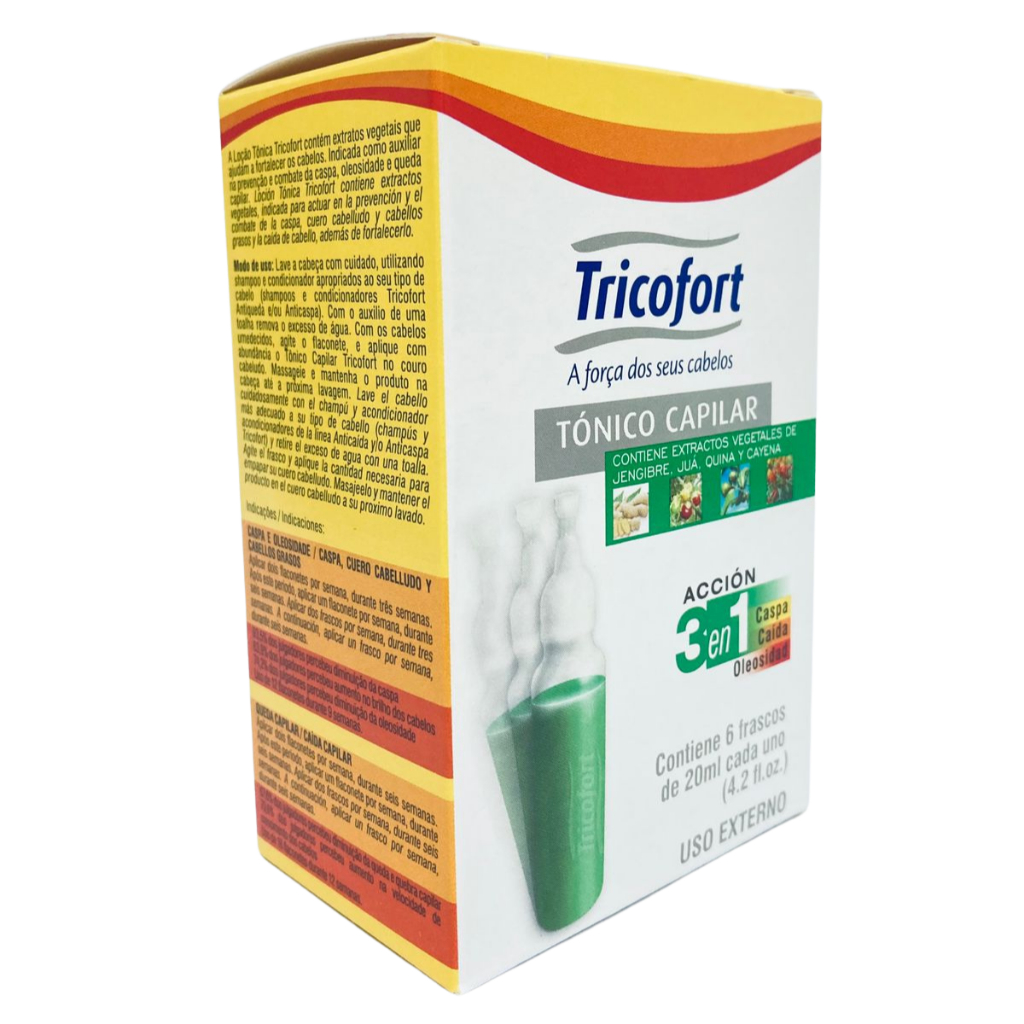 Tônico Capilar Ação 3 em 1 Caspa / Queda / Oleosidade 20ml Tricofort - Caixa C/12 Ampolas