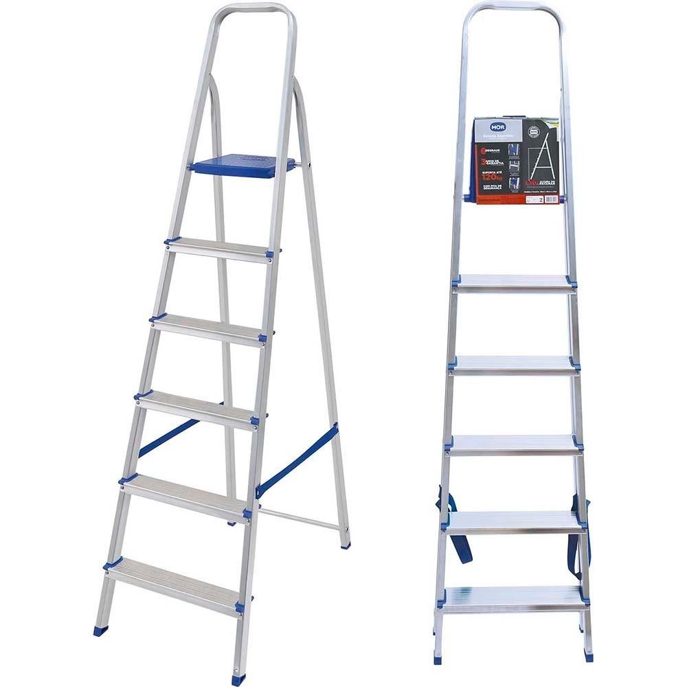 Escada de Alumínio Mor Multiuso Regulável, 6 Degraus