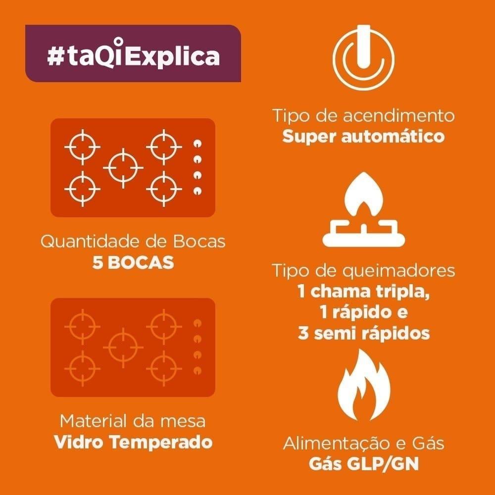 Cooktop 5 Bocas Fischer com Tripla Chama Superautomático, Preto - Bivolt