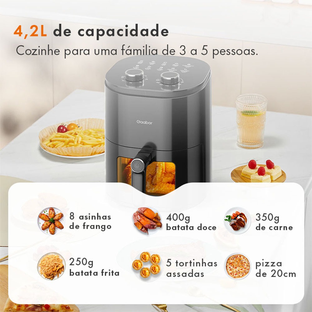 Gaabor fritadeira air fryer 4,2L Botão de botão duplo Grande janela de visualização AF-45M02A -1