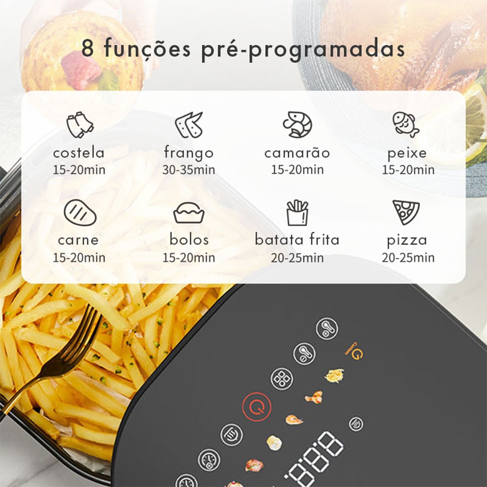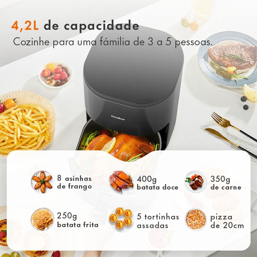 Gaabor Fritadeira elétrica sem óleo 4,2L com queimador duplo tela sensível ao toque e visor transparente AF-45T02A