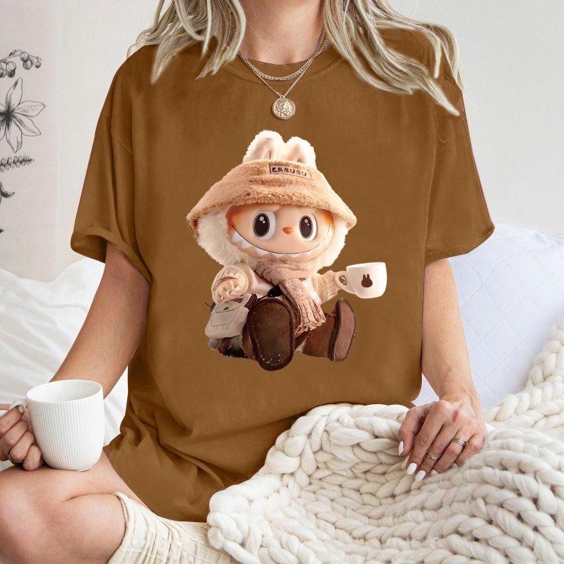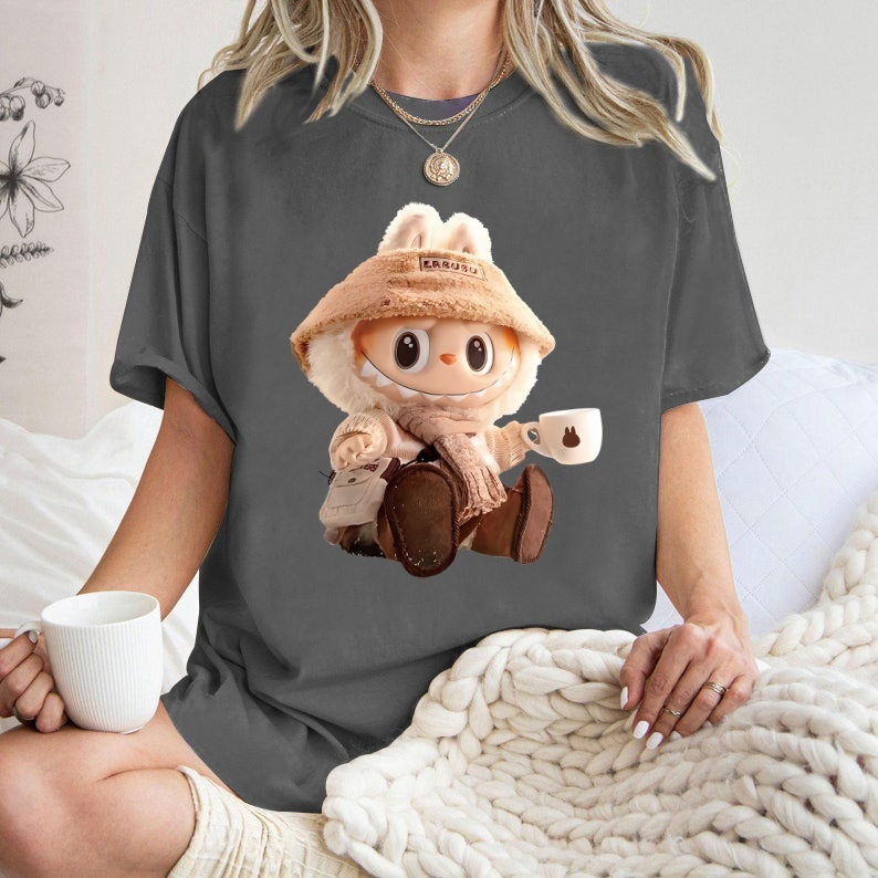 [Camiseta Premium Algodão Puro]LA Plus Size Unissex-Oversized Confortável Estilo Casual Camiseta Tecido Respirável#F7474