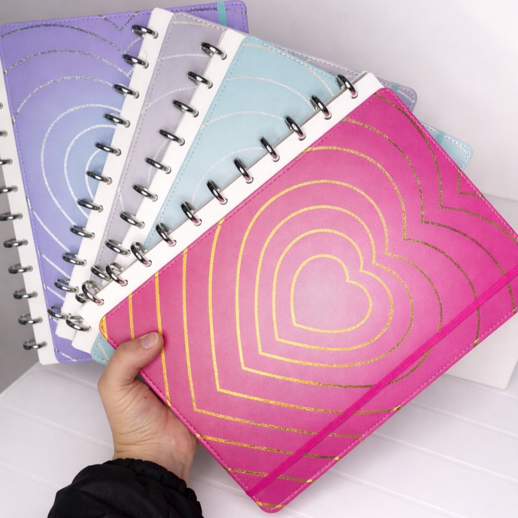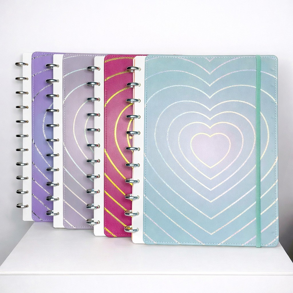 Caderno De Discos Inteligente A4 A5 B5 Coração Capa Dura Folhas Pautadas Destacáveis Reposicionáveis