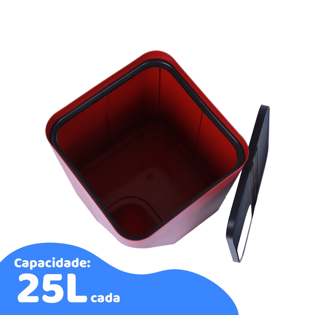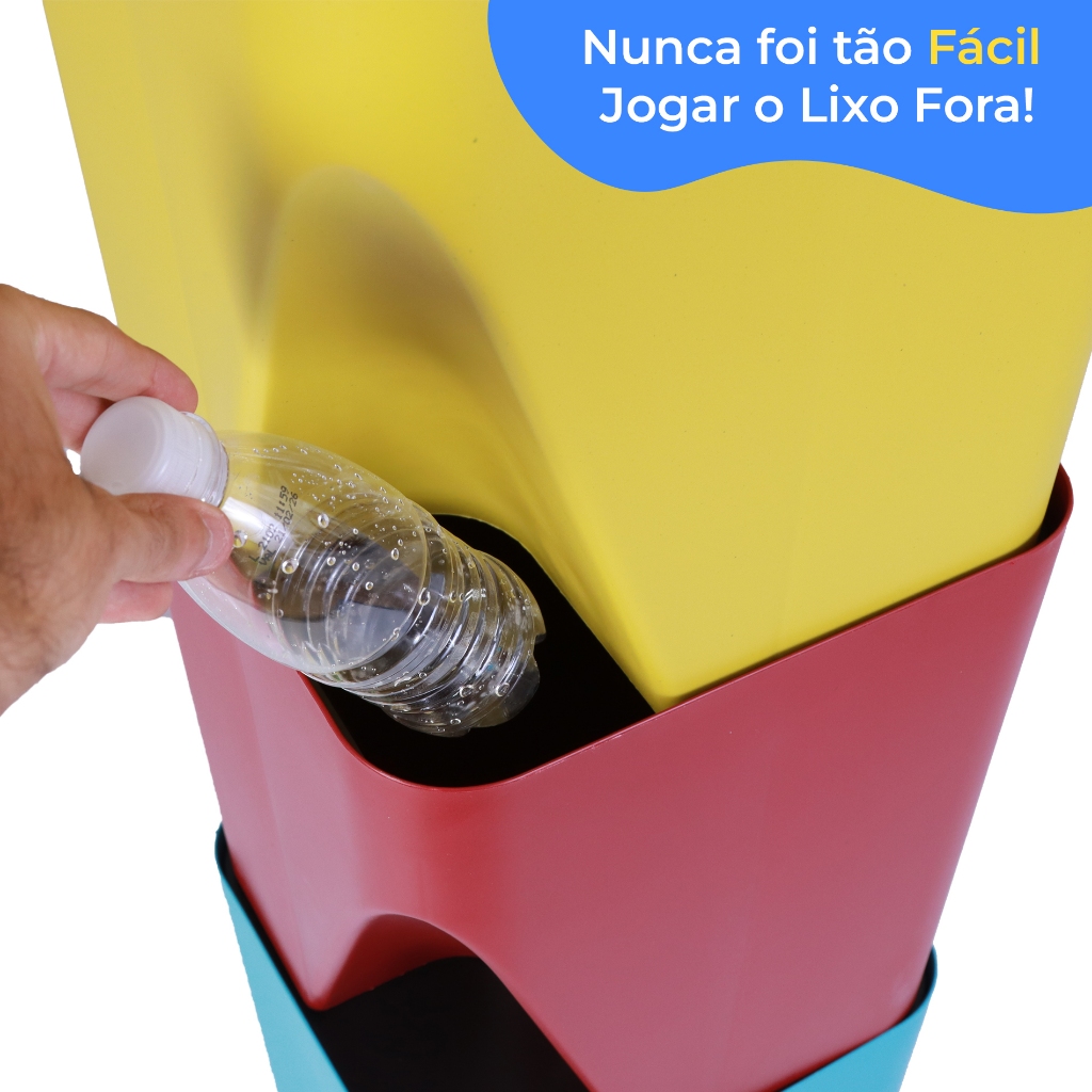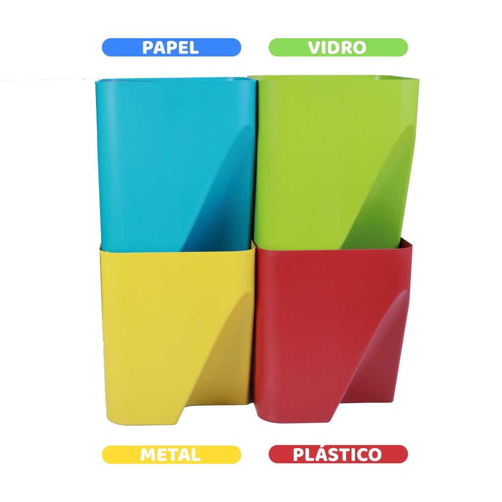 Kit 4 Lixeiras Empilháveis Recicláveis, Cores Reciclagem, Colorido Tampa Aberta 25 Litros