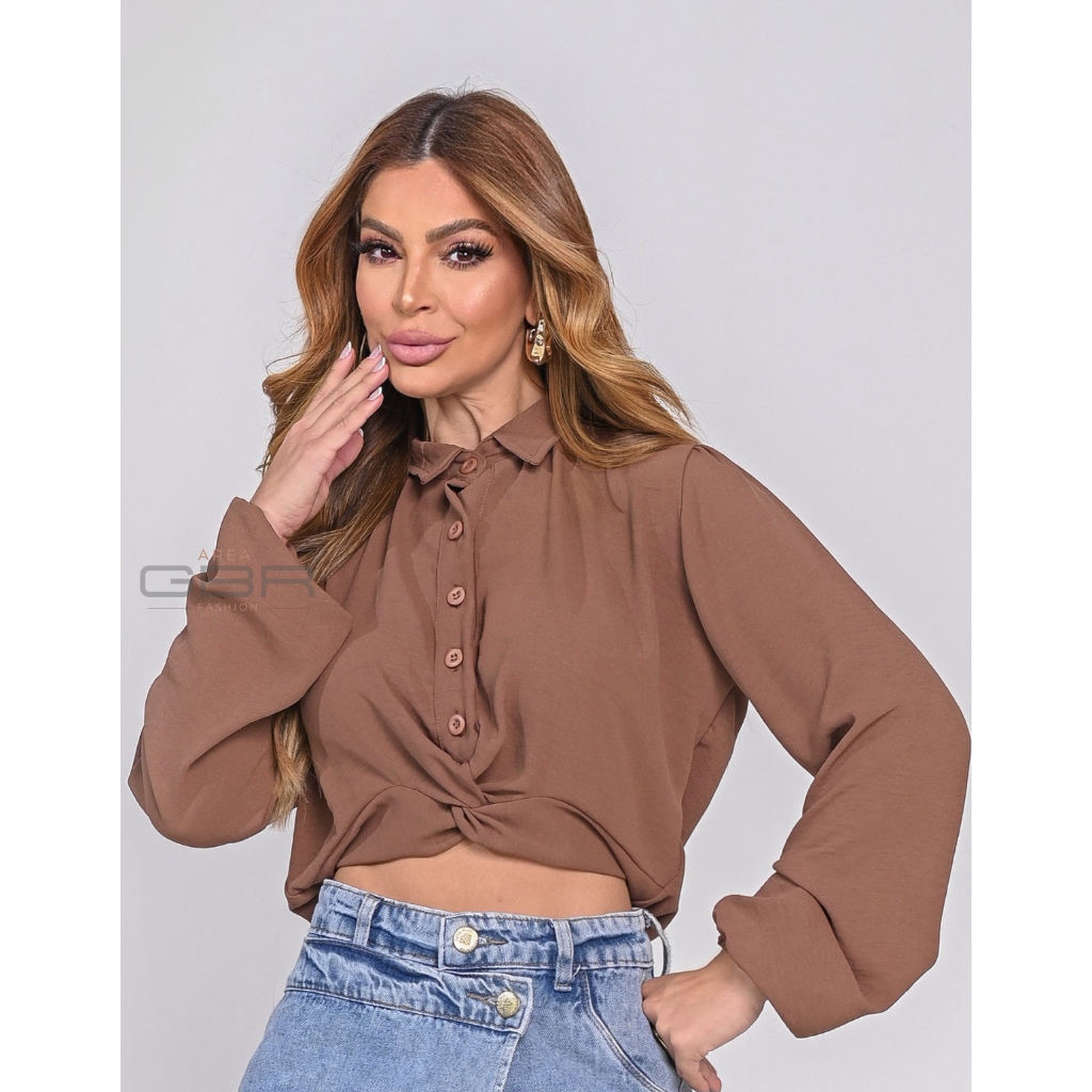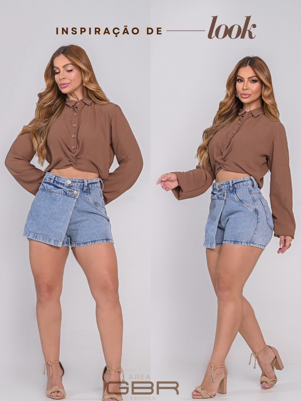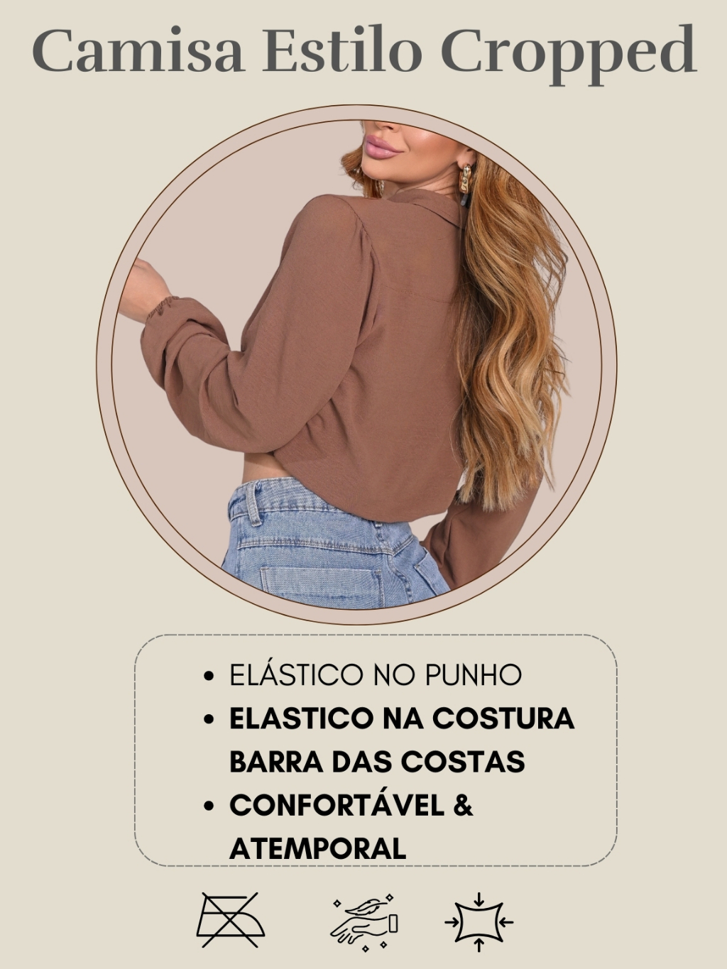 Camisa Feminina Cropped Alfaiataria Manga Longa Confortável Casual Chic