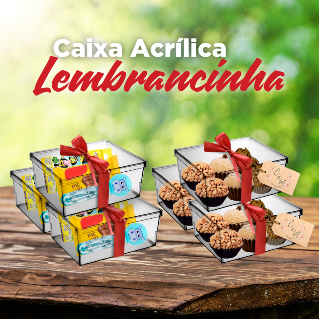 KIT 20 40 Caixinhas Acrílicas Lembrancinha BIG 11x9cm Tampa Click - Festa e Casamento Transparente