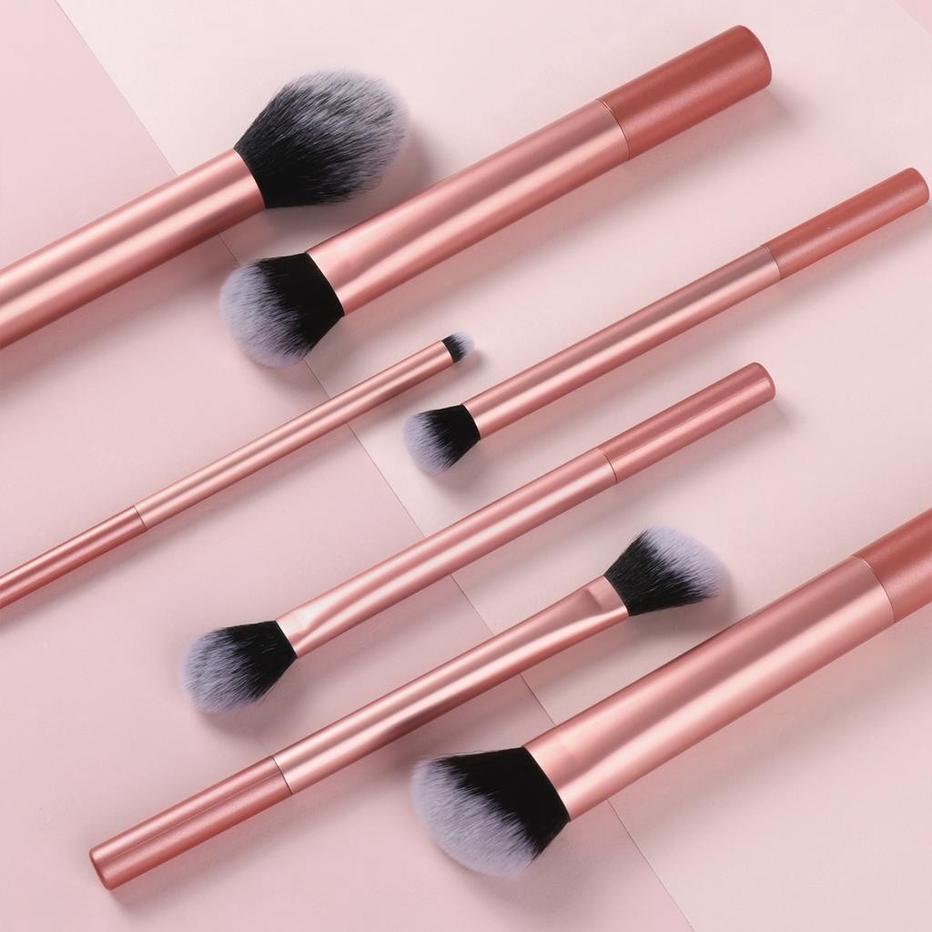 Kit com 7 Pincéis de Maquiagem — Macios, Elegantes e Ideais para Blush, Pó, Corretivo e Sombra