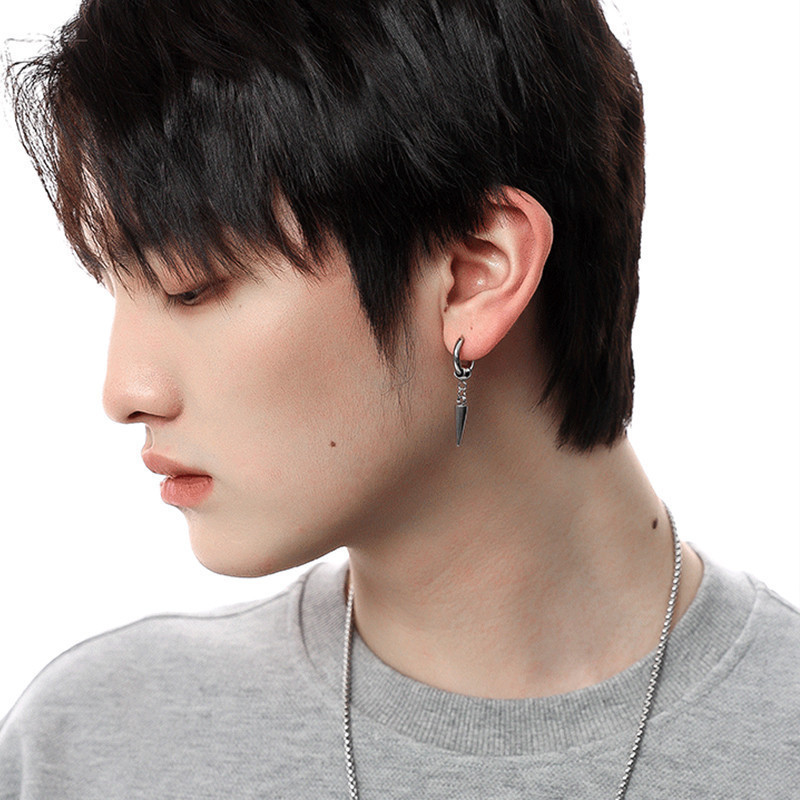 Brinco Argola Rock Punk Hip Hop com Ponta Cônica em Aço – Unissex, 1 Peça
