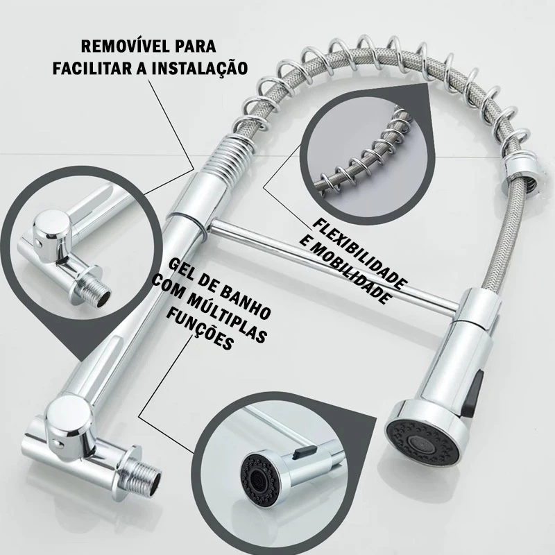 Torneira De Cozinha Gourmet Alça Única Com Extensor De Spray Tubo De Água Flexível Superior Prateado Para Ajuste!