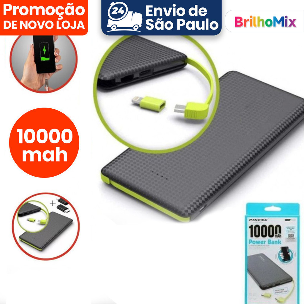 Carregador portátil Pinneng Power Bank 10.000mah com adaptador para iPhone, V8
