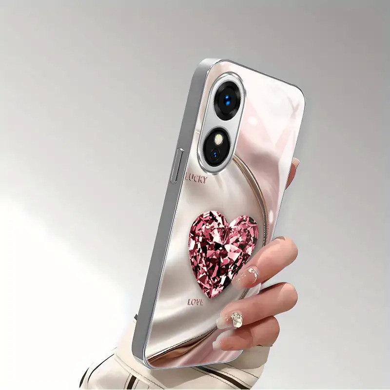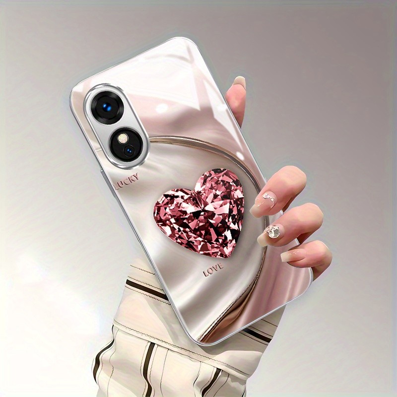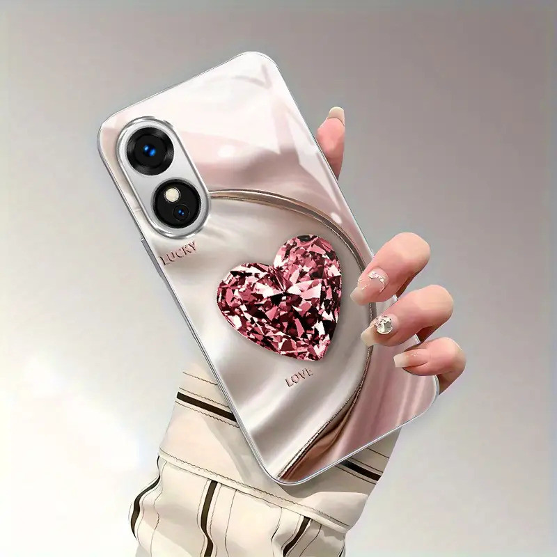 Uma capa de telefone estilosa adequada para Oppo A17, A17K, A16 e A16K, com design de coração de diamante. Possui uma es