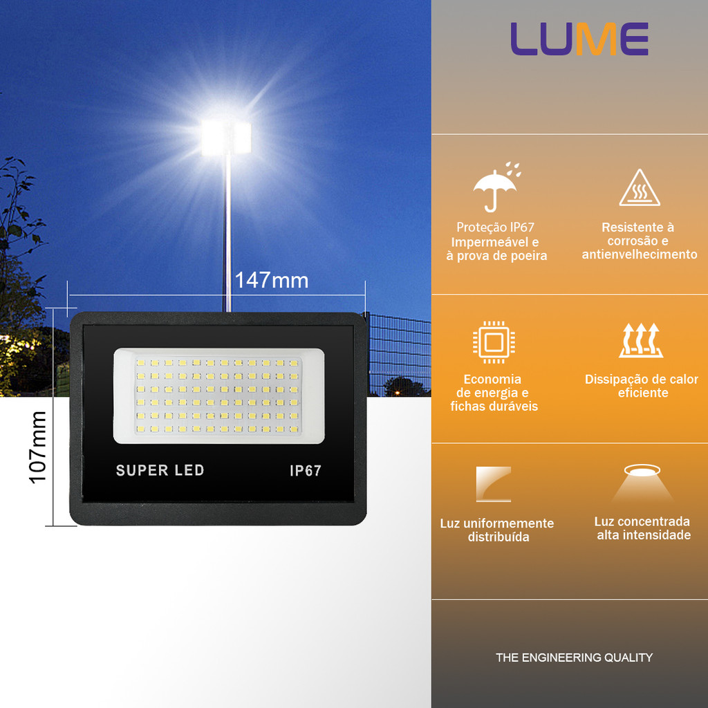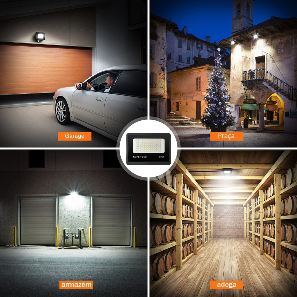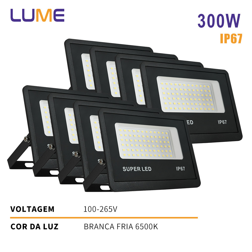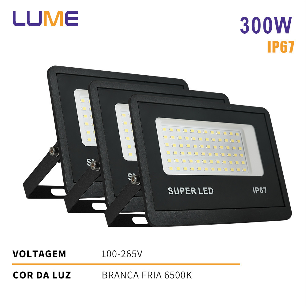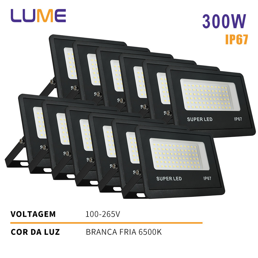 KIT 3 a 12 Refletor LED 300W Holofote Super Potente à Prova d'Água Área Externa Econômico IP67 Bivolt