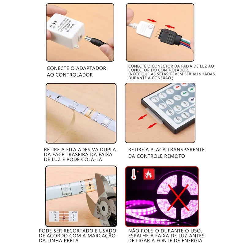 Fita Led Rgb Rolo 5m 16 Cores com Controle Decoração Casa Loja Gesso Teto Vitrine Com ou Sem Fonte