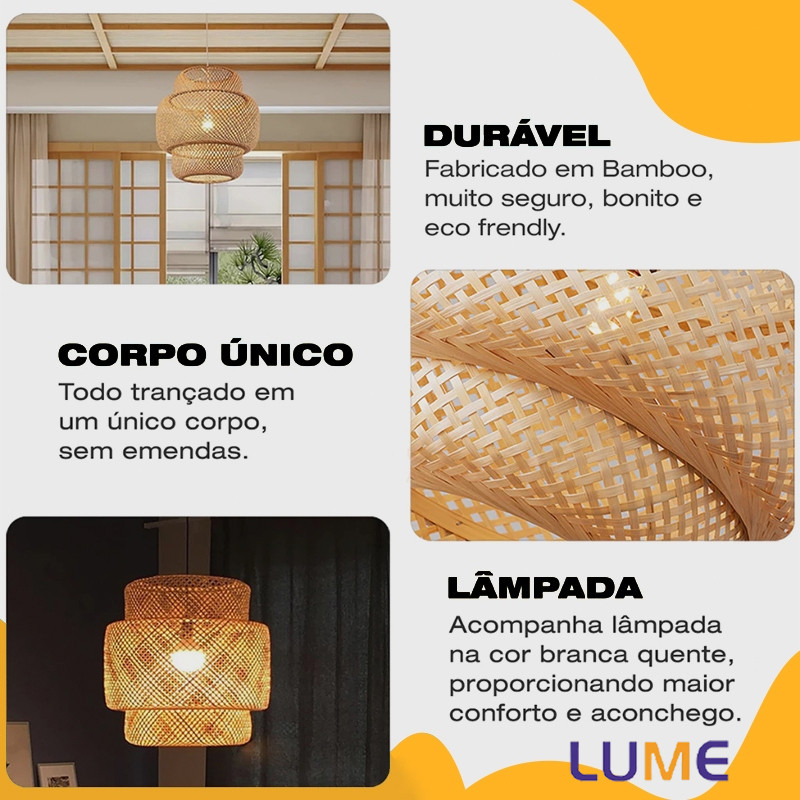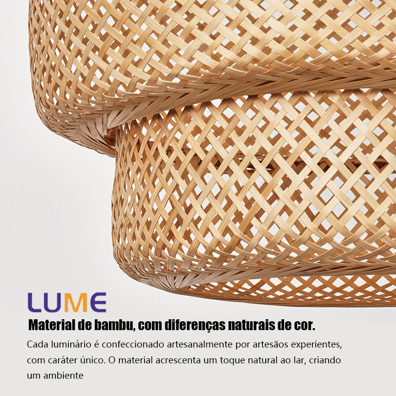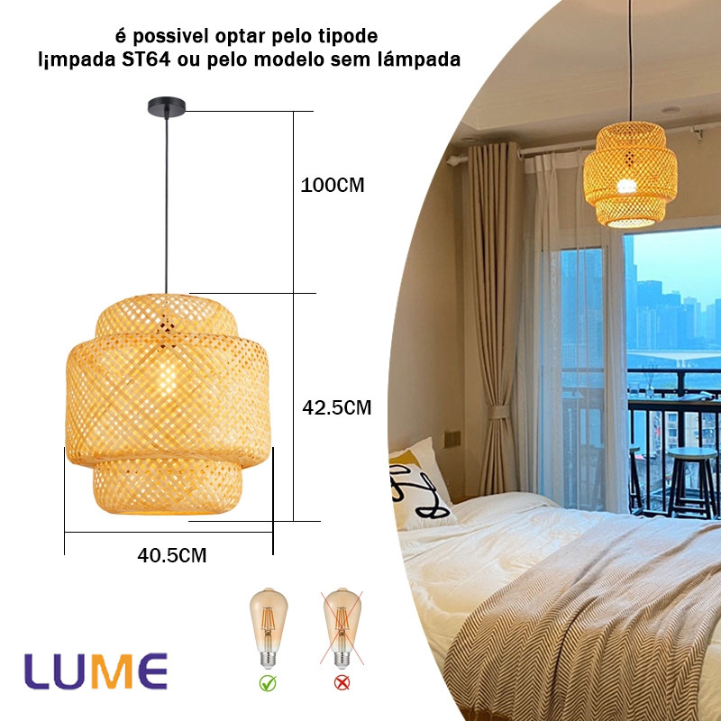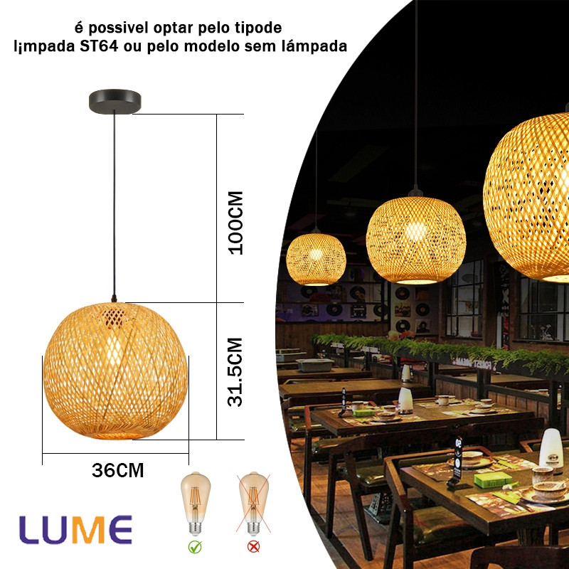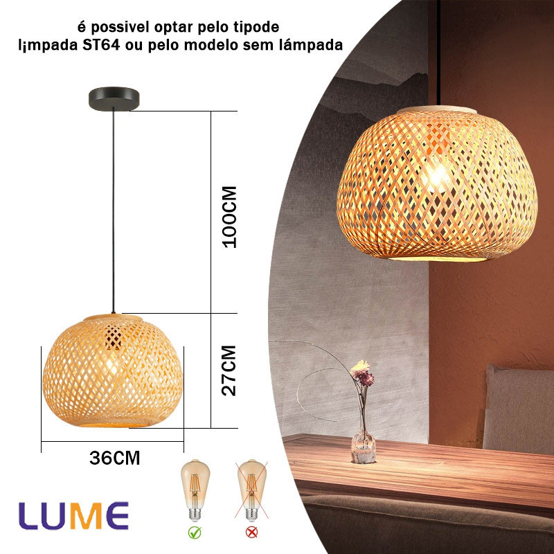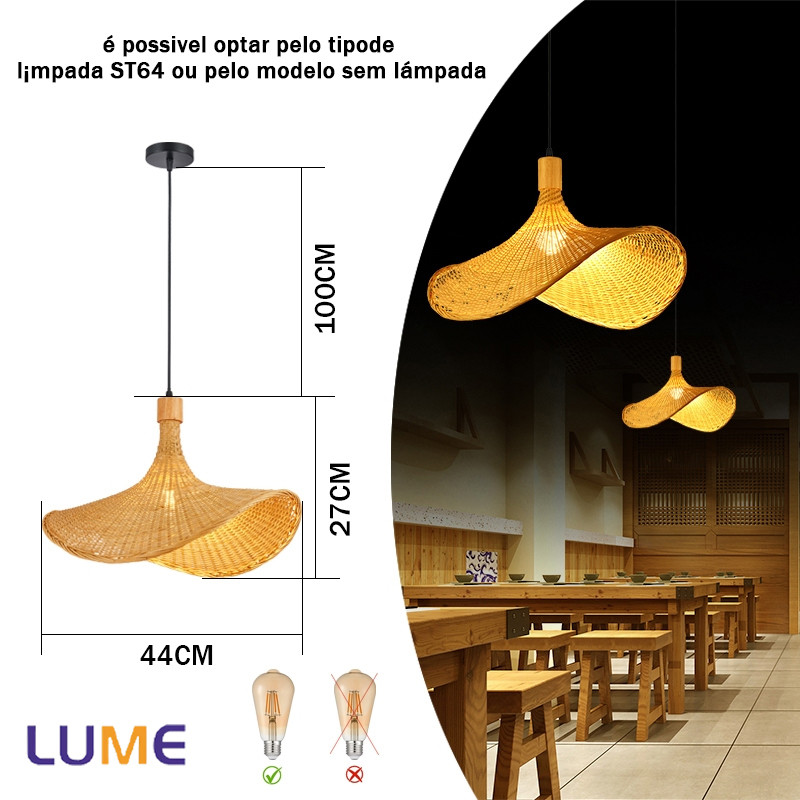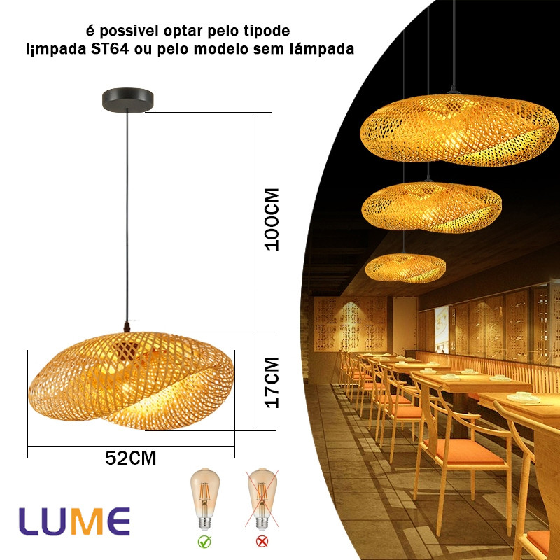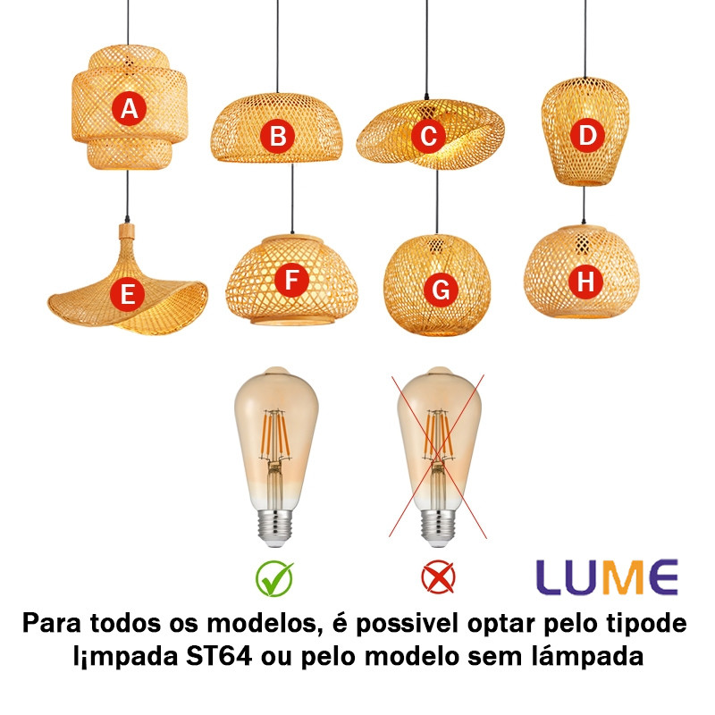 Luminária de Teto Rústica em Fibra Rattan 8 Modelos Disponíveis E27 Bivolt Com ou Sem Lâmpada ST64