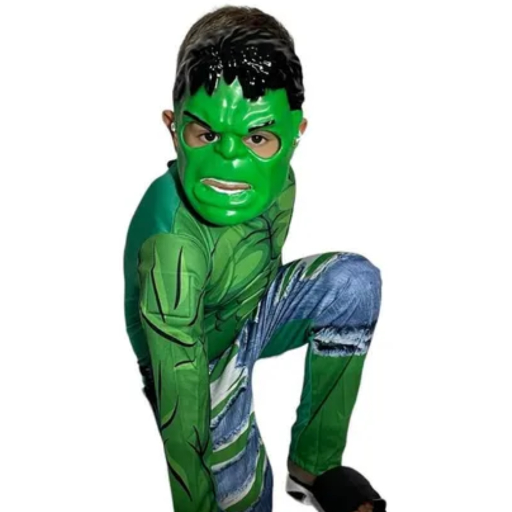 Fantasia Infantil Hulk Longo Com Mascara De Plástico E Enchimento