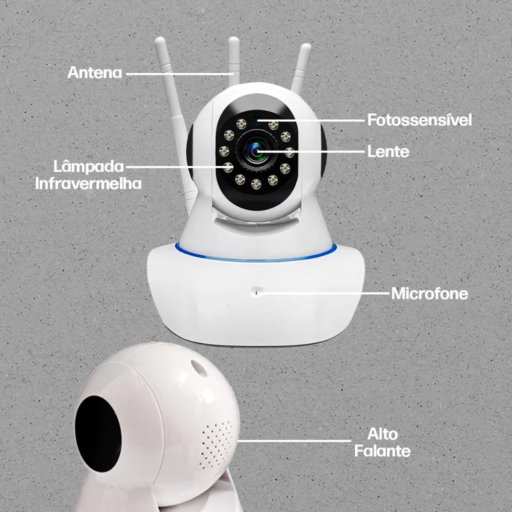 Câmera Babá Eletrônica com 3 Antenas Wifi HD