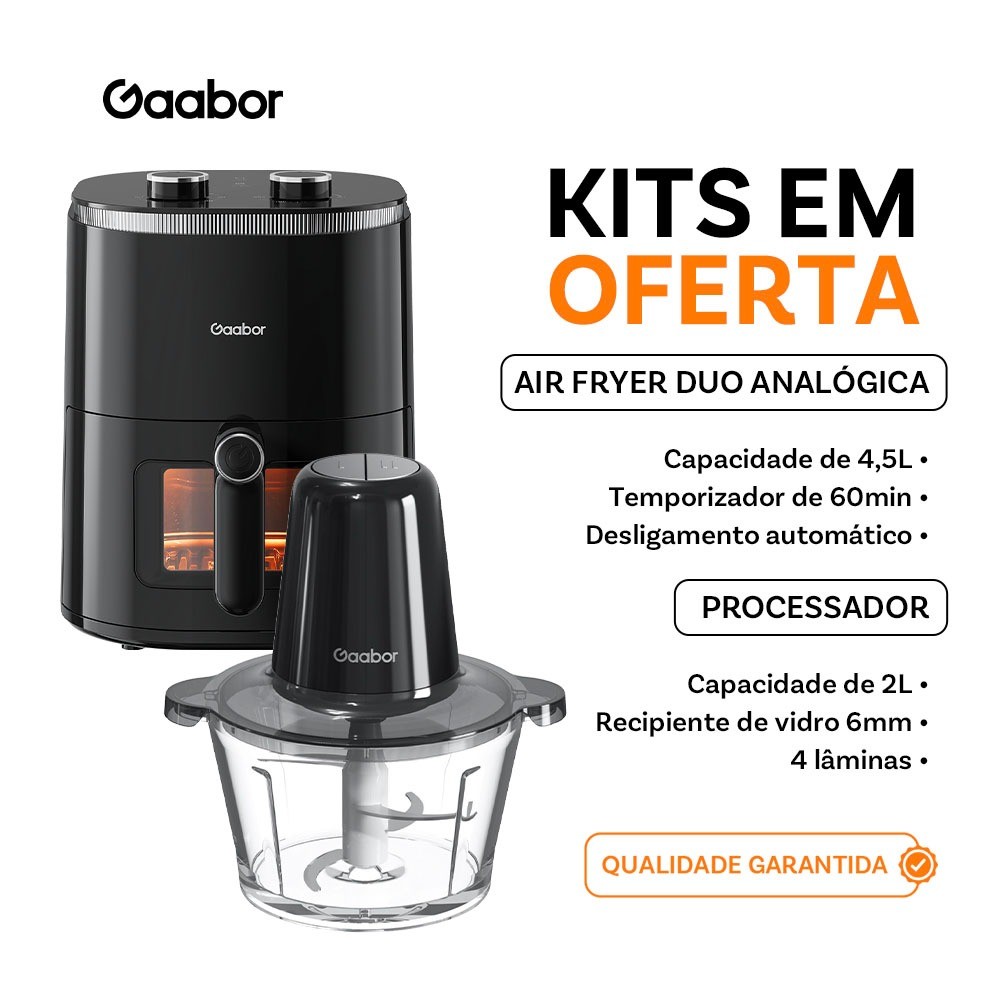 [Combo] Fritadeira Sem Óleo Gaabor 4.2L Duo c/ Janela + Acessórios de Cozinha | Prática e Econômica