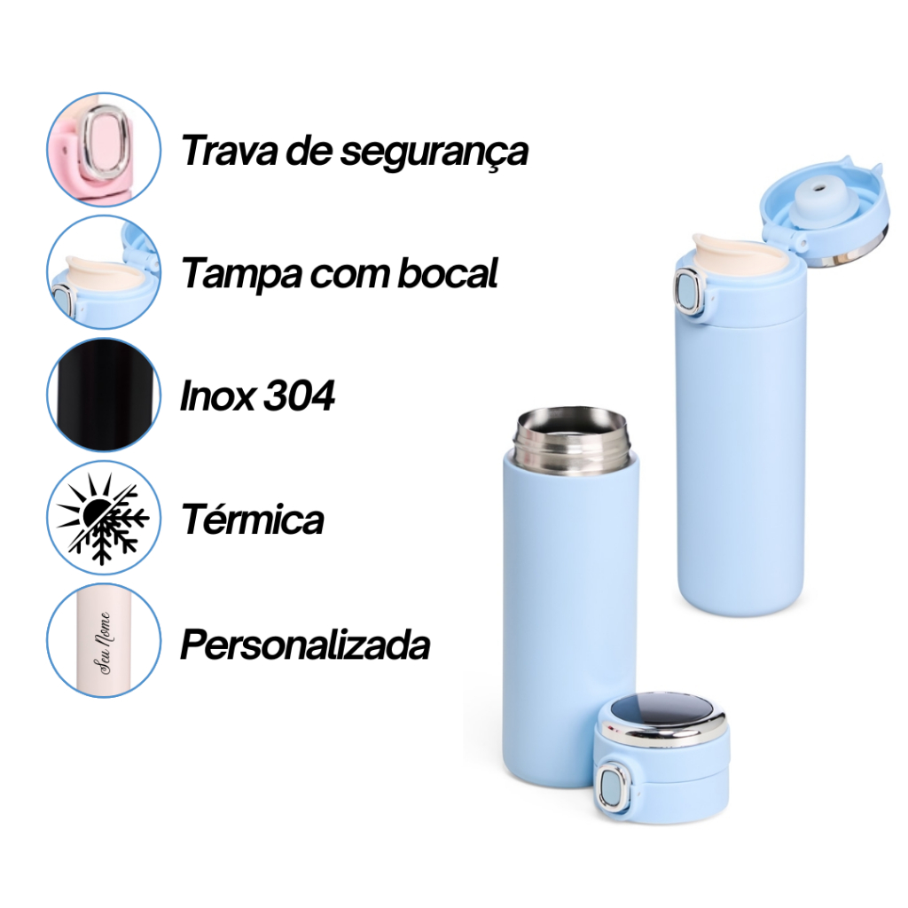Garrafa Térmica Personalizada 400ml - Nome, Logotipo, Time, Profissão