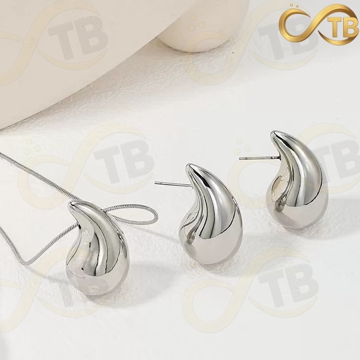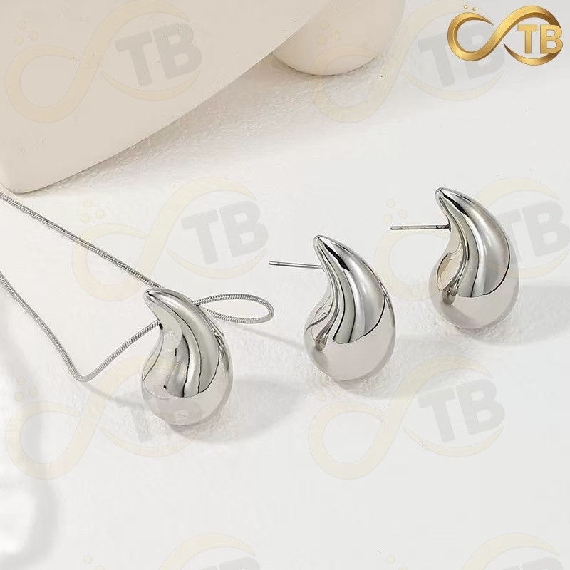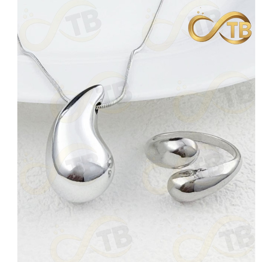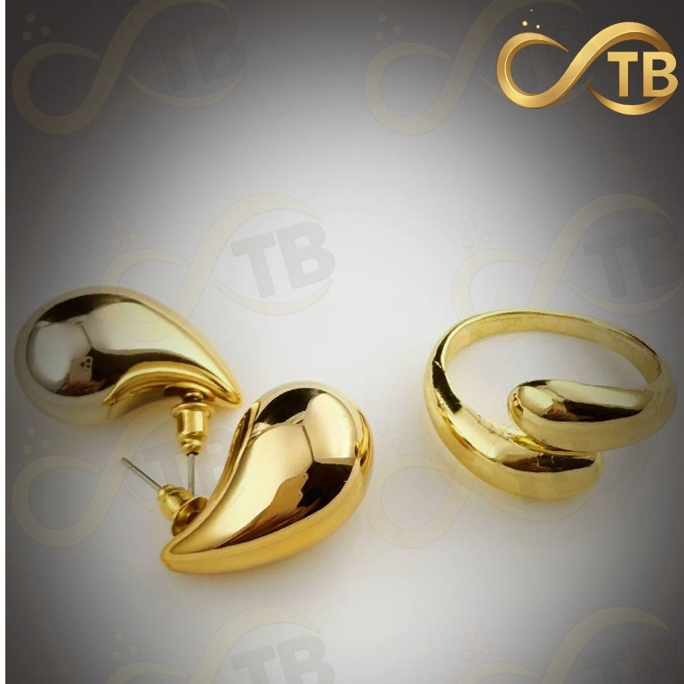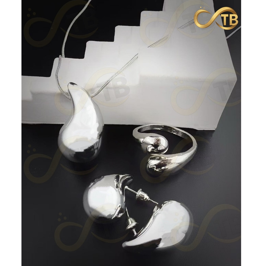 TB Colar Conjunto Colar Anel Brincos de Metal Exagerada em Ouro e Prata com Design Gota Água