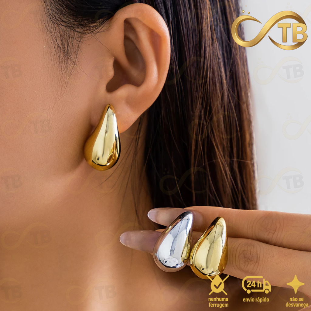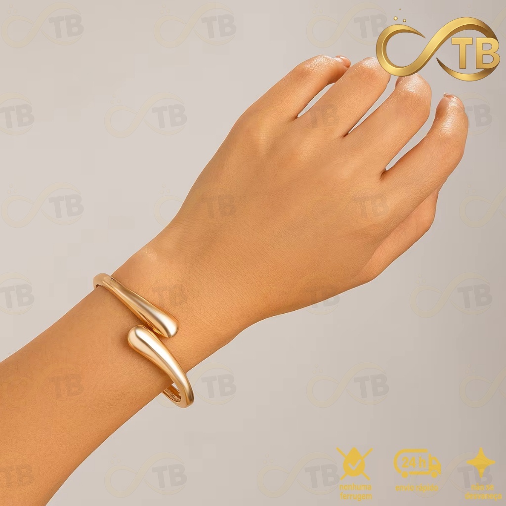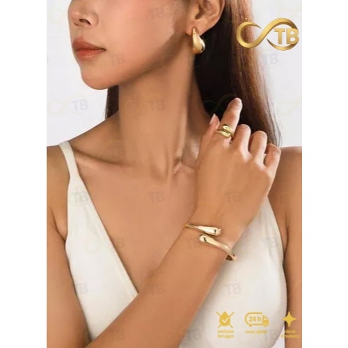 TB Moda Conjunto Pulseira Anel Brincos de Metal Exagerada em Ouro com Design de Gota Água Acessório