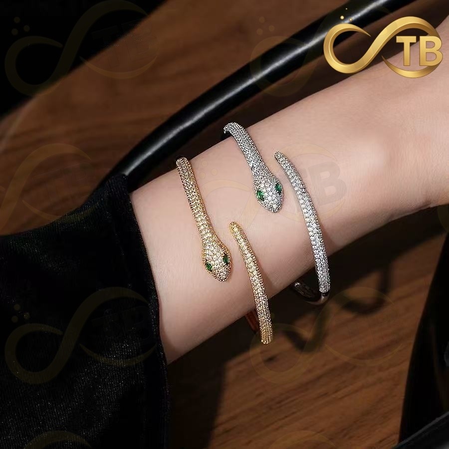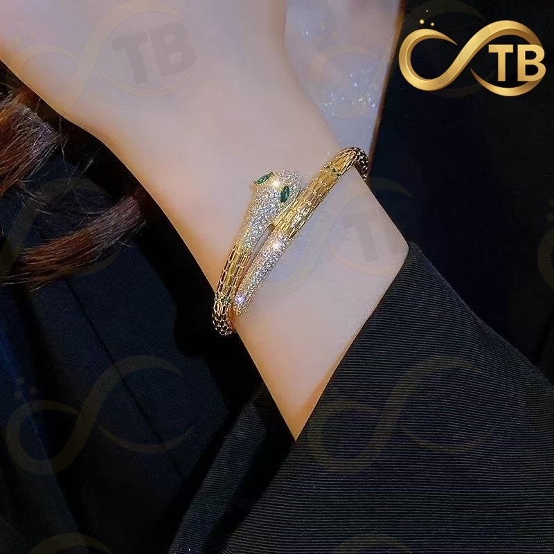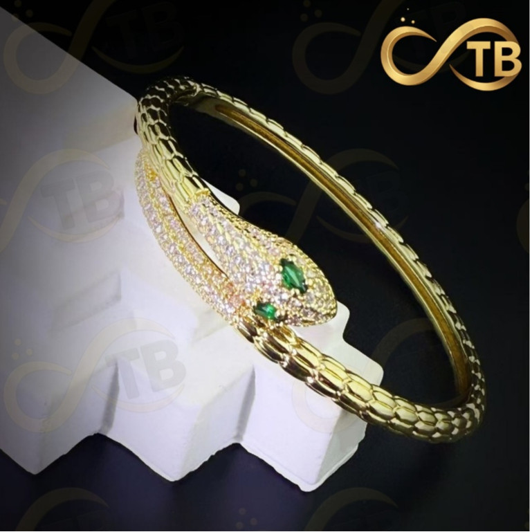 TB Moda Feminina Pulseira Serpente-Ouro Banhado & Prata com Strass Brilhe.O presente perfeito