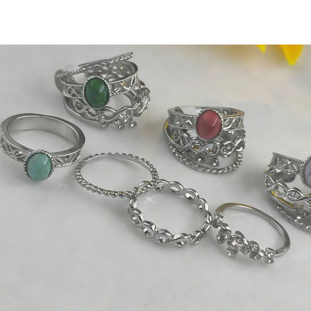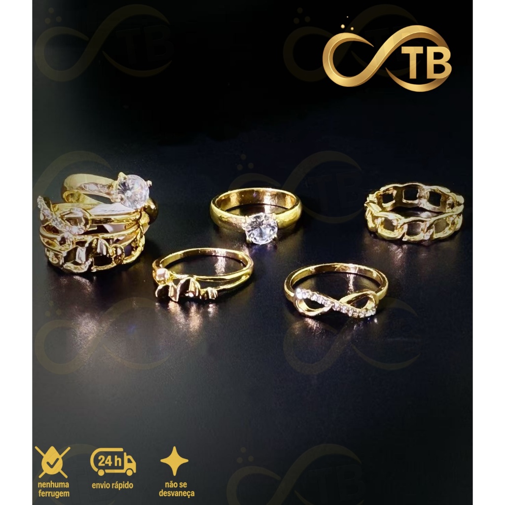 TB Moda Conjunto de 4 peças de Anel de eternidade infinito banhados a ouro e prata em aço inoxidável